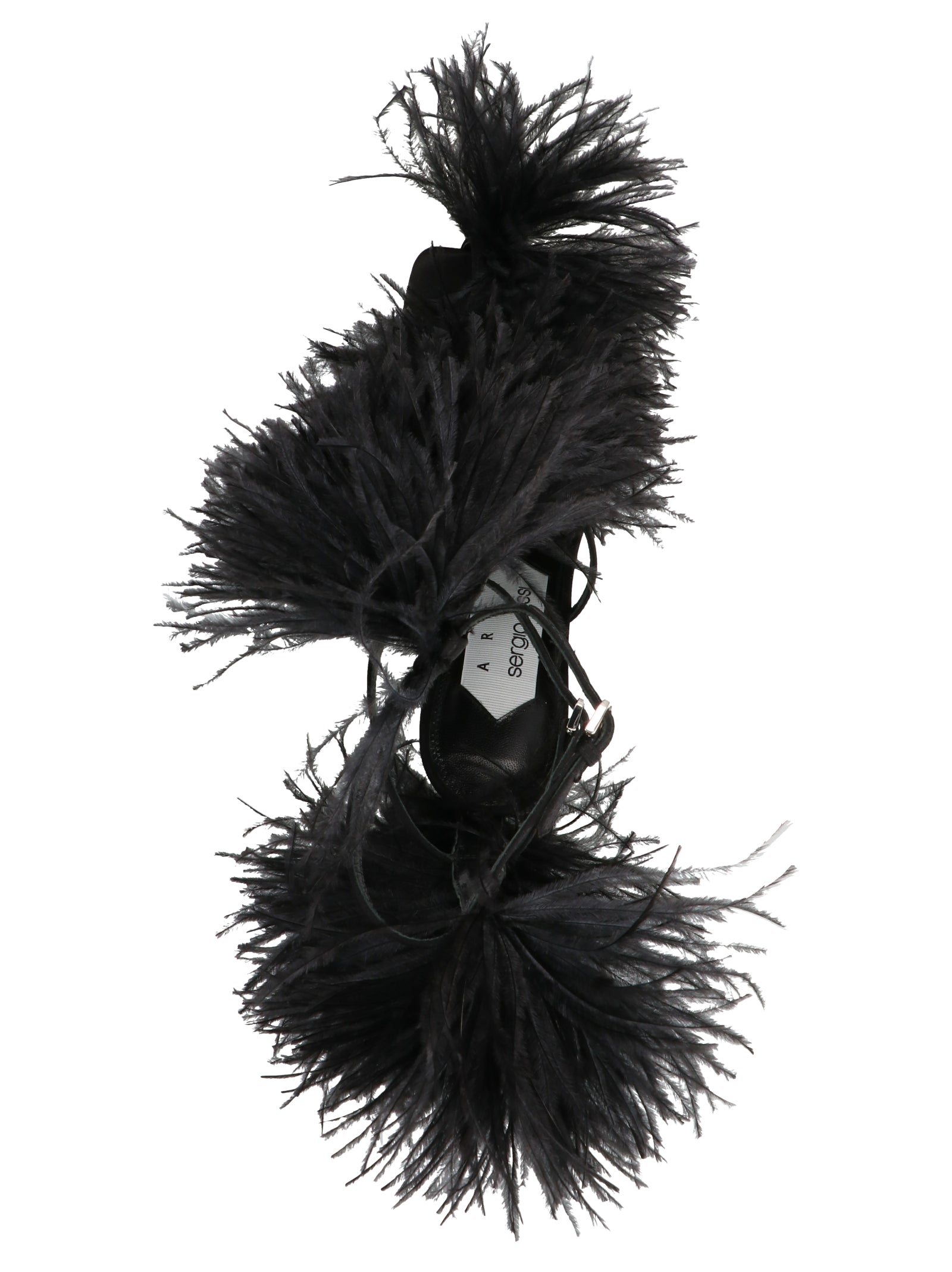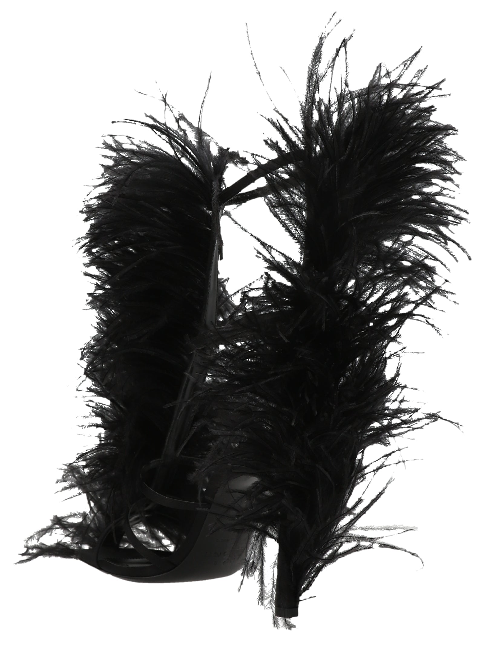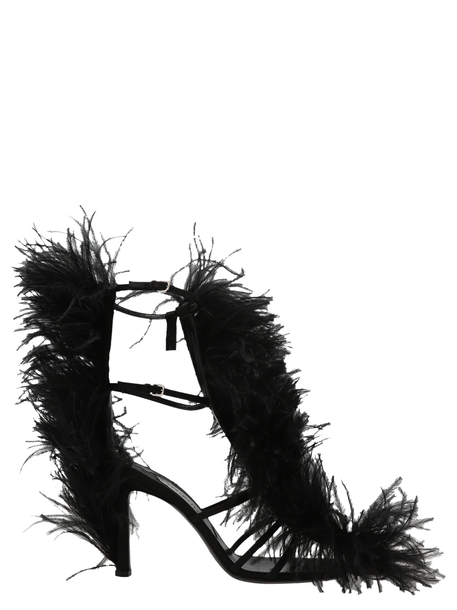 'Amazona' 'Amazona' Sandals in satin with all-over ostrich feather appliqués, ankle straps and a heel.