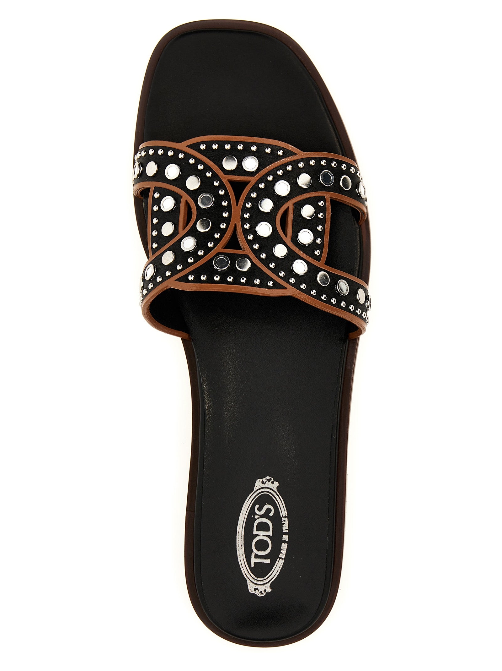 'Maxi Catena' leather sandals with stud appliqué and leather sole.