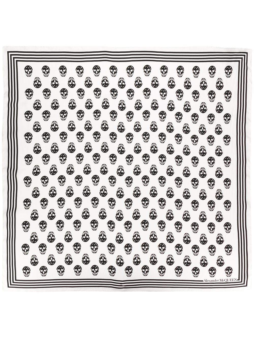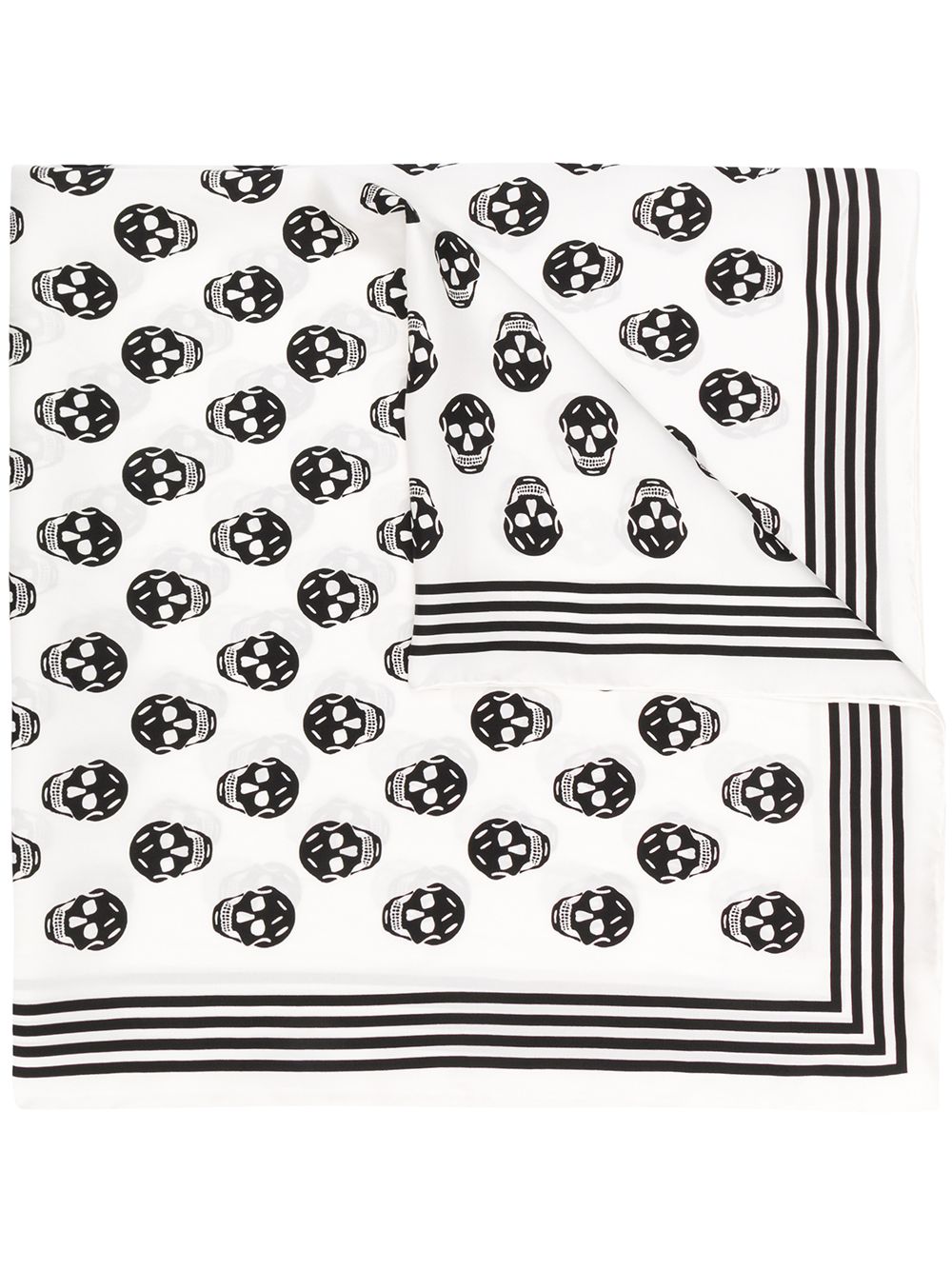 Make a statement with just one piece. This skull print scarf from Alexander McQueen uses black and white tones for a high-impact look. How do you wear yours? Featuring a skull print, a striped pattern and a printed logo to the front.