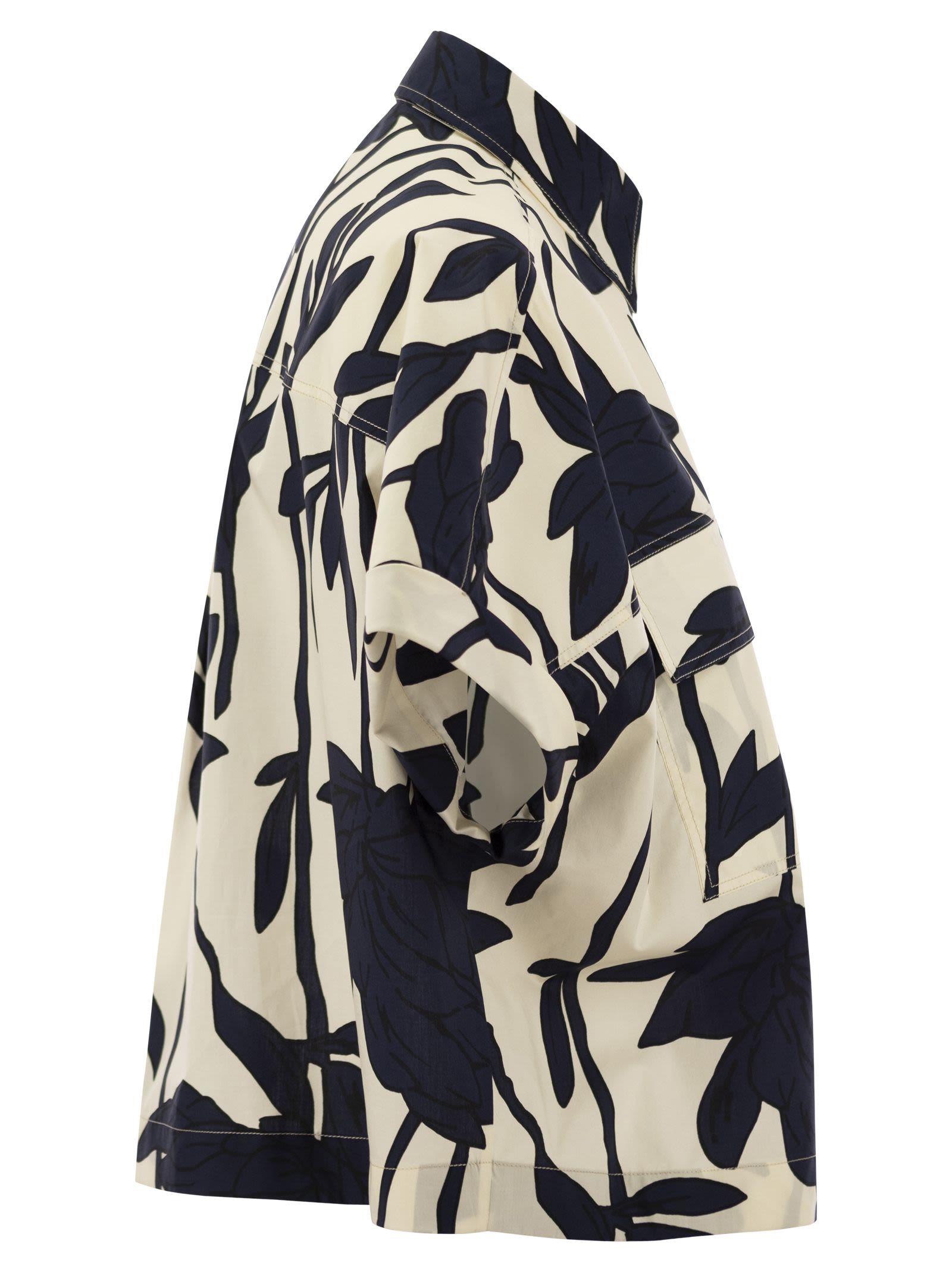 Brunello Cucinelli Ramage Print Cotton Poplin Shirt With Jewellery