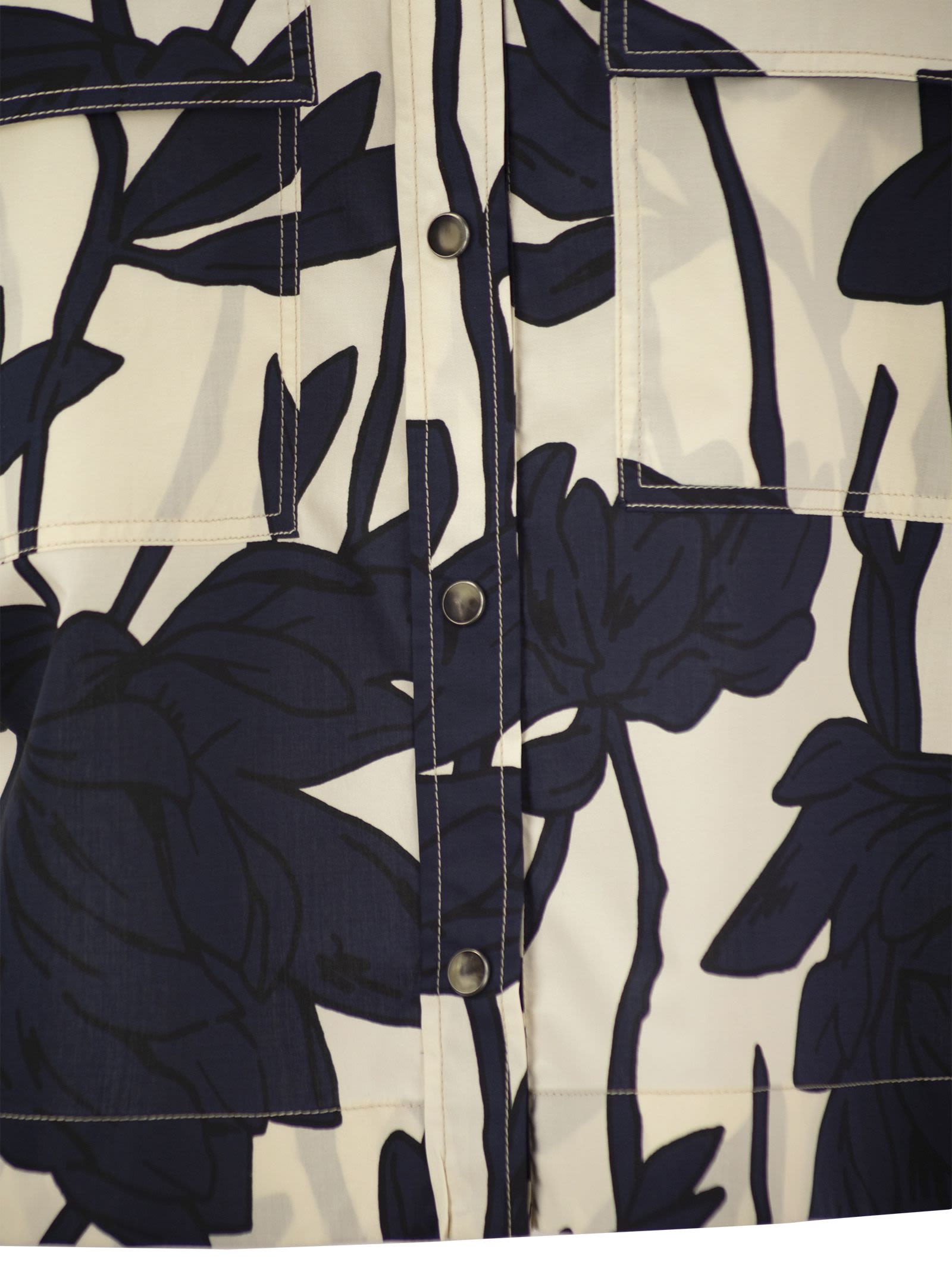 Contemporary shapes and fine materials rework the classic shirt style. The cotton poplin features the Ramage print, which reproduces a vegetal design that highlights the nuances of the season, while the ample volumes and the practical details of the pockets and snap fastenings highlight the casual style of the garment. The jewel detail on the pocket, an iconic decoration of the Brunello Cucinelli collections, infuses the garment with a refined touch of light. - Smooth snap-button closure - Classic collar - Two patch pockets with flap on chest - Nickel-free jewel decoration DESIGNER ID: ML942RC506 C6014