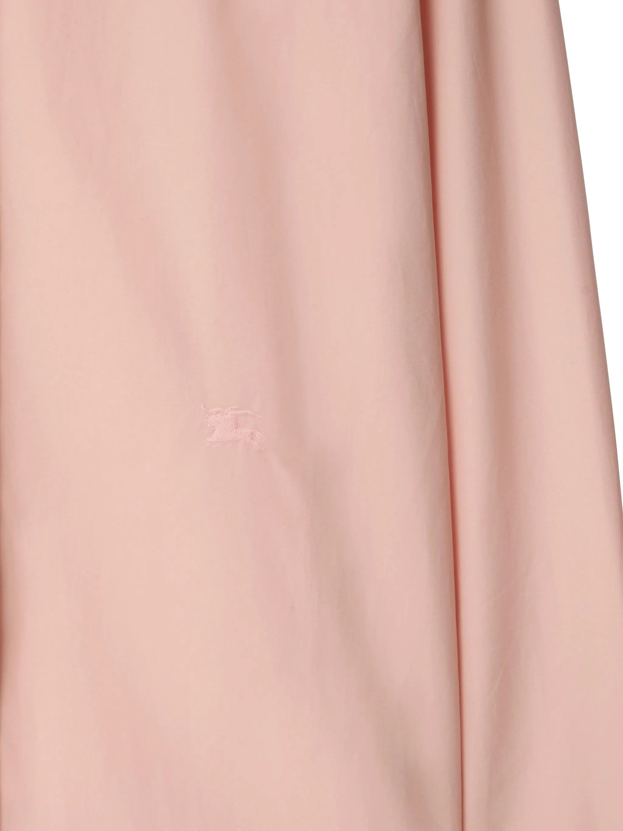 Camicia Burberry in popeline di cotone italiano, vestibilità regular. Dettagli raffinati con ricamo Equestrian Knight e finiture Burberry Check su colletto, paramontura e polsini. Eleganza senza tempo con bottoni in madreperla.