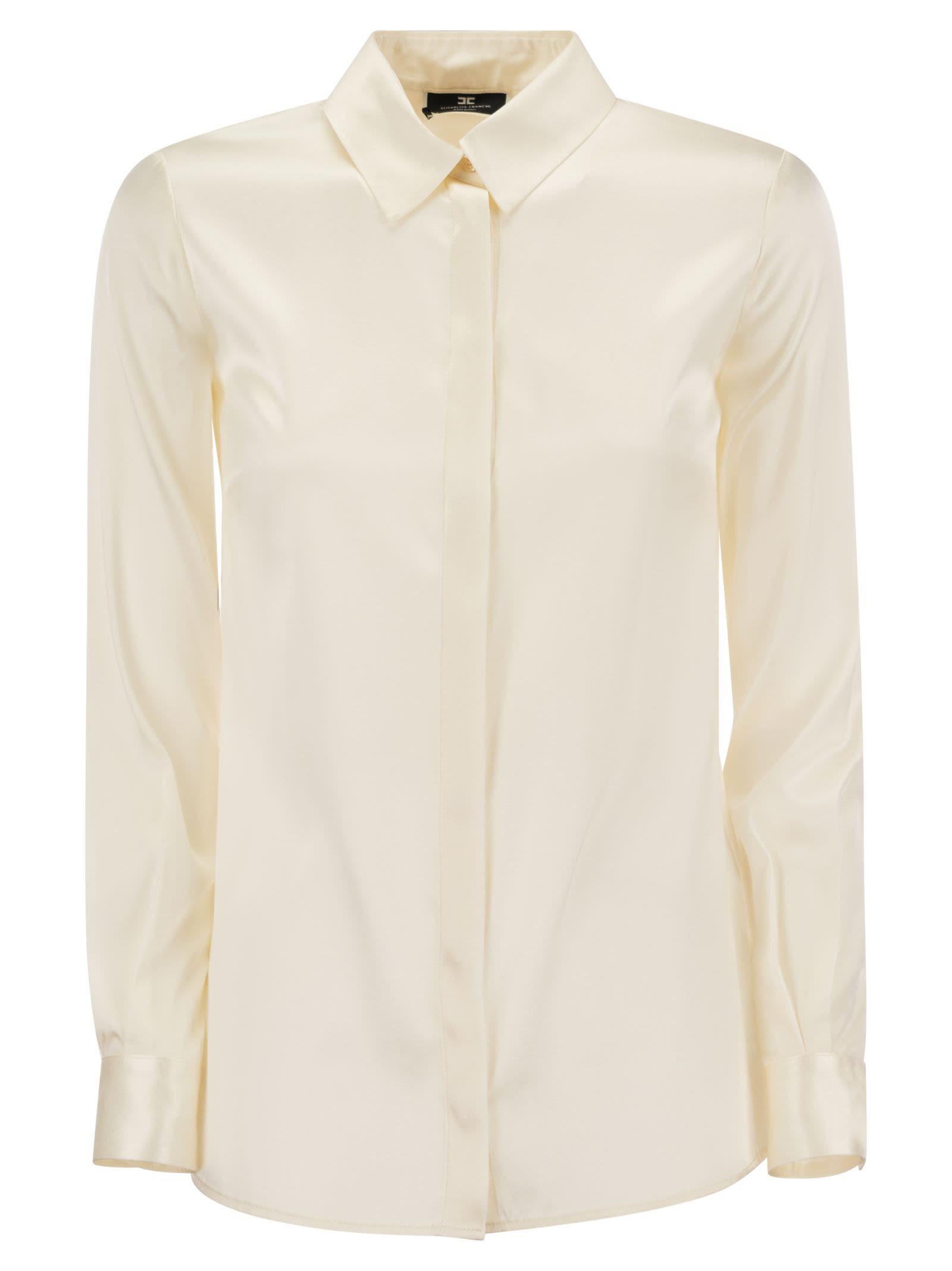 Silk satin long-sleeved shirt with concealed mother-of-pearl button fastening. - Mother-of-pearl buttons DESIGNER ID: CA04441E2 193