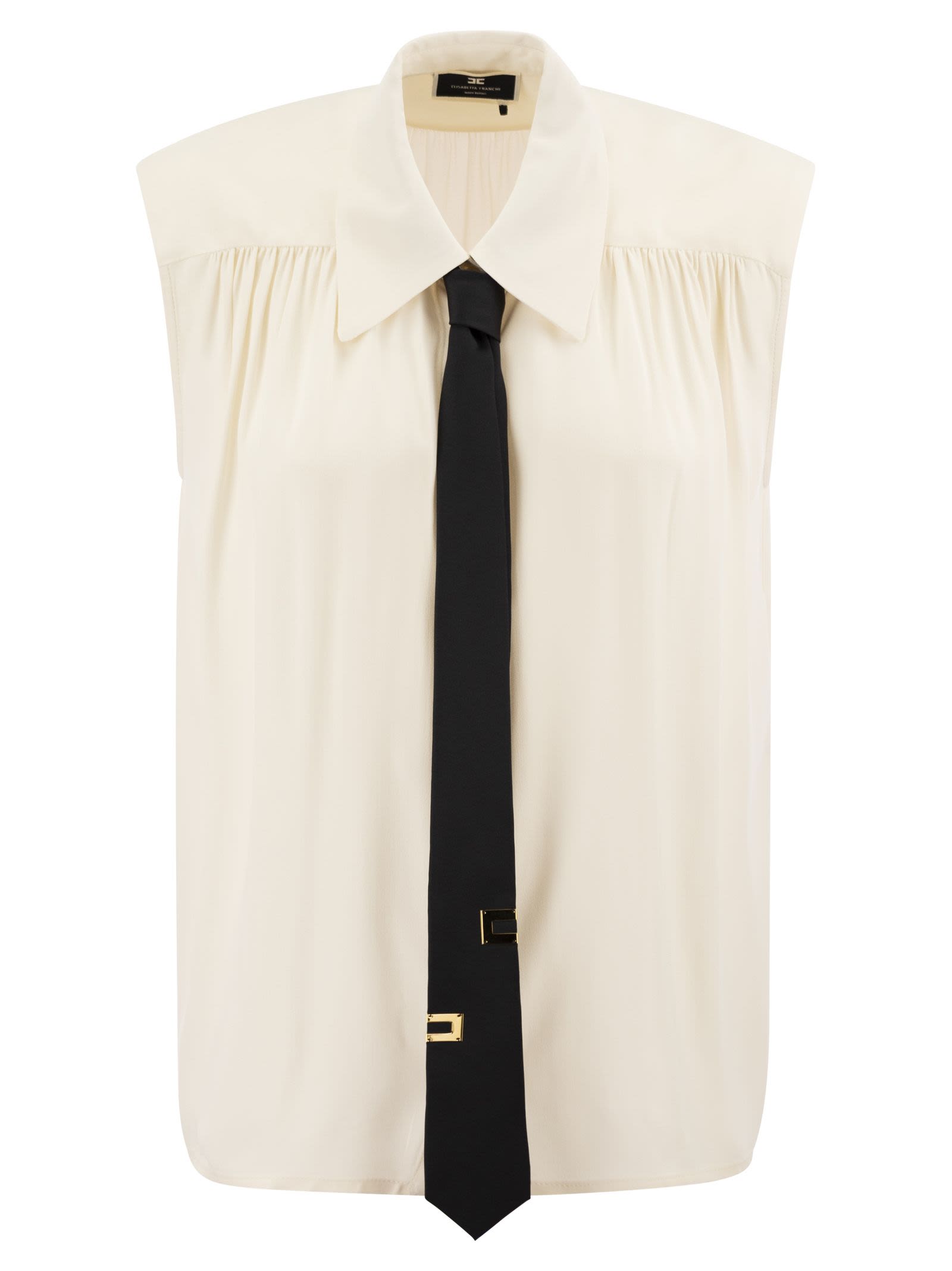Elisabetta Franchi Viscose Georgette Flared Shirt With Lettering Tie