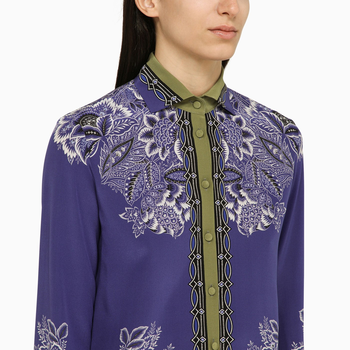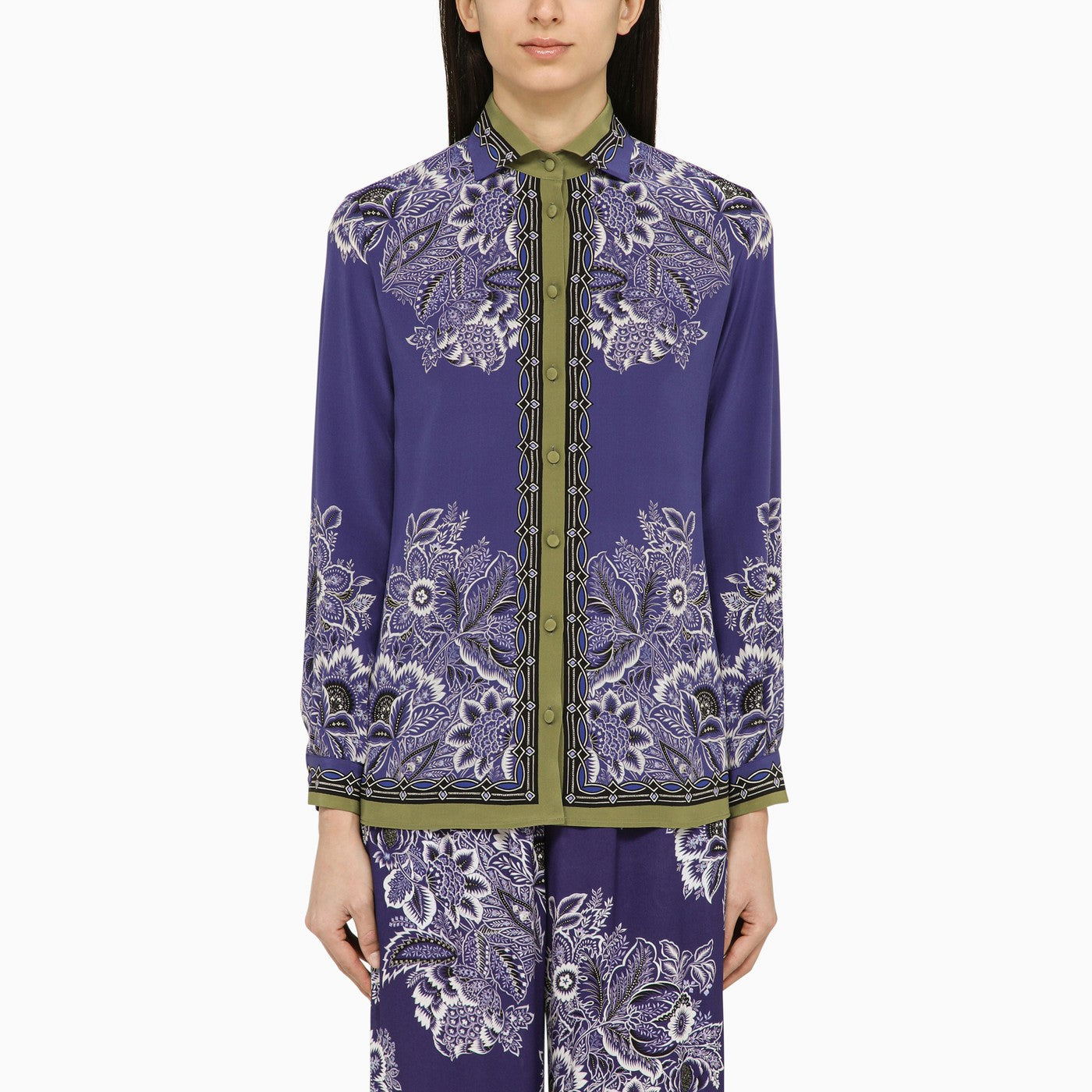 Multicoloured silk bouquet print shirt from Etro featuring a contrasting graphic patterned trim, a French collar, a front button placket, long sleeves, buttoned cuffs and a regular fit.