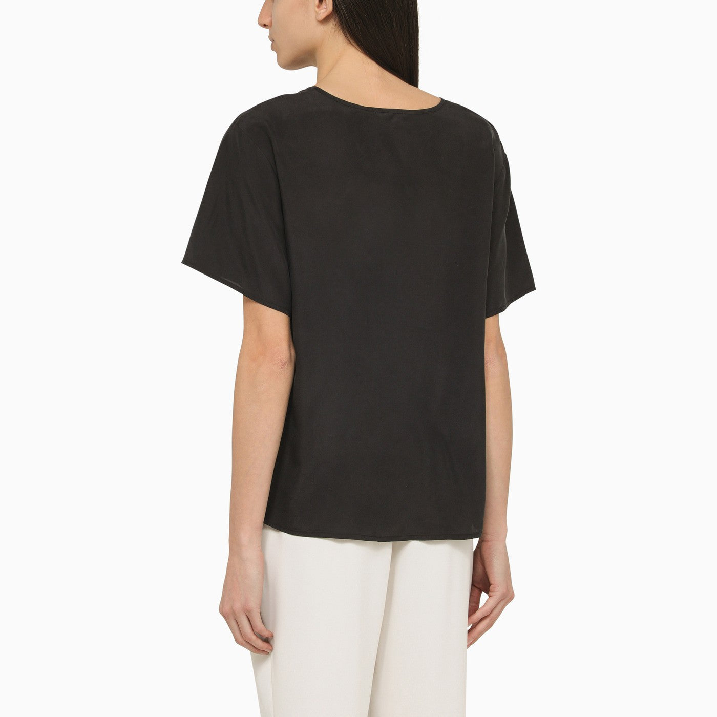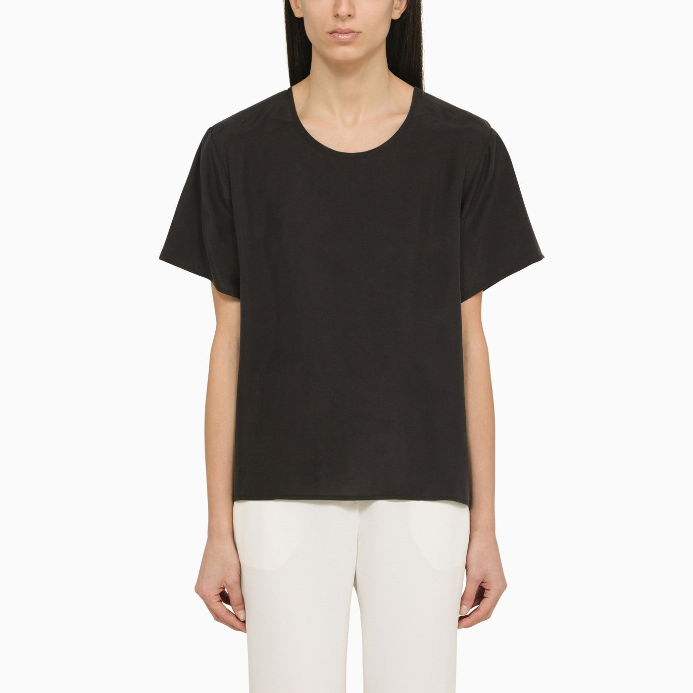 T-shirt by P.A.R.O.S.H. in black silk featuring a crew-neck, short sleeves and a straight hem.