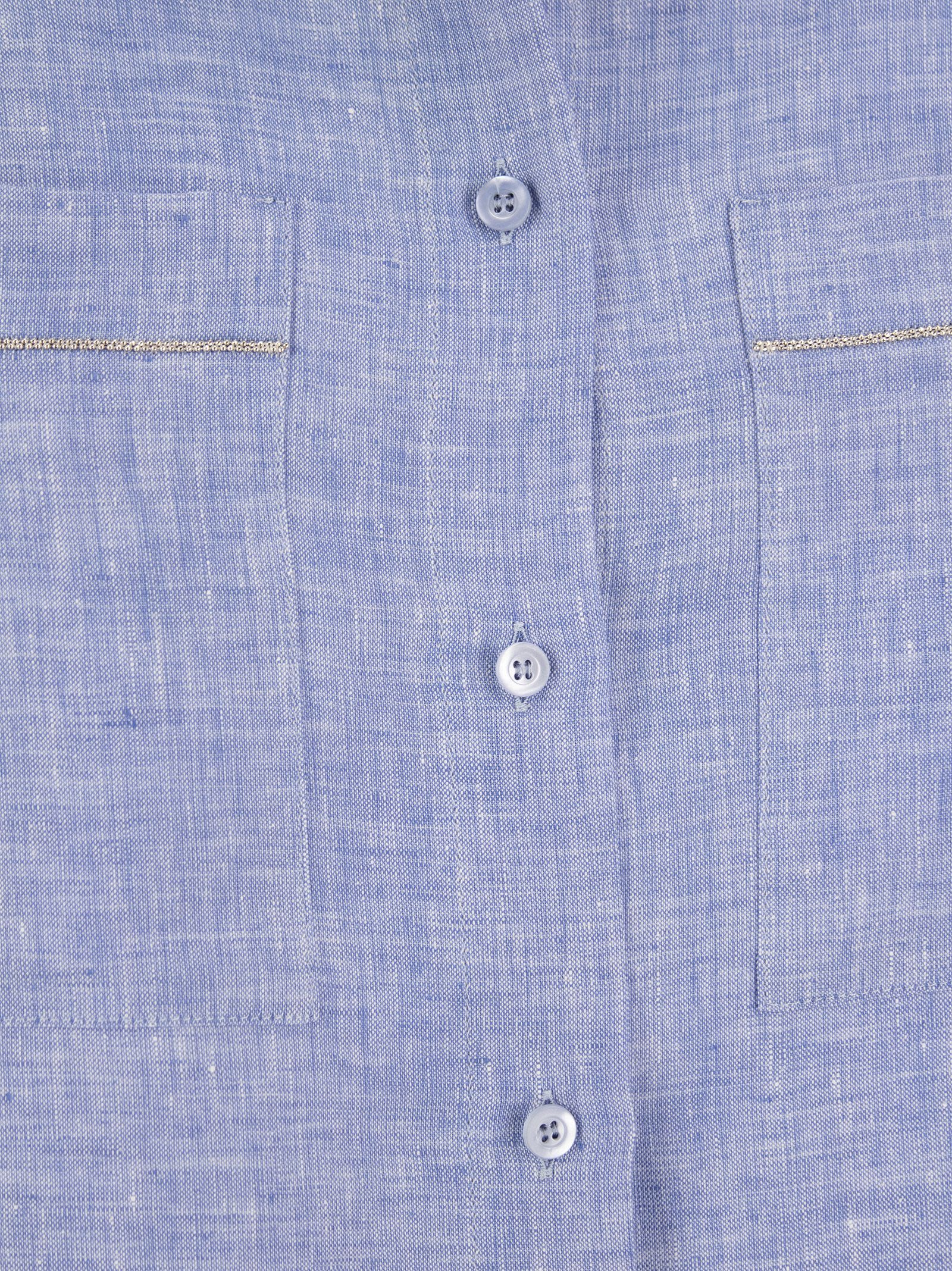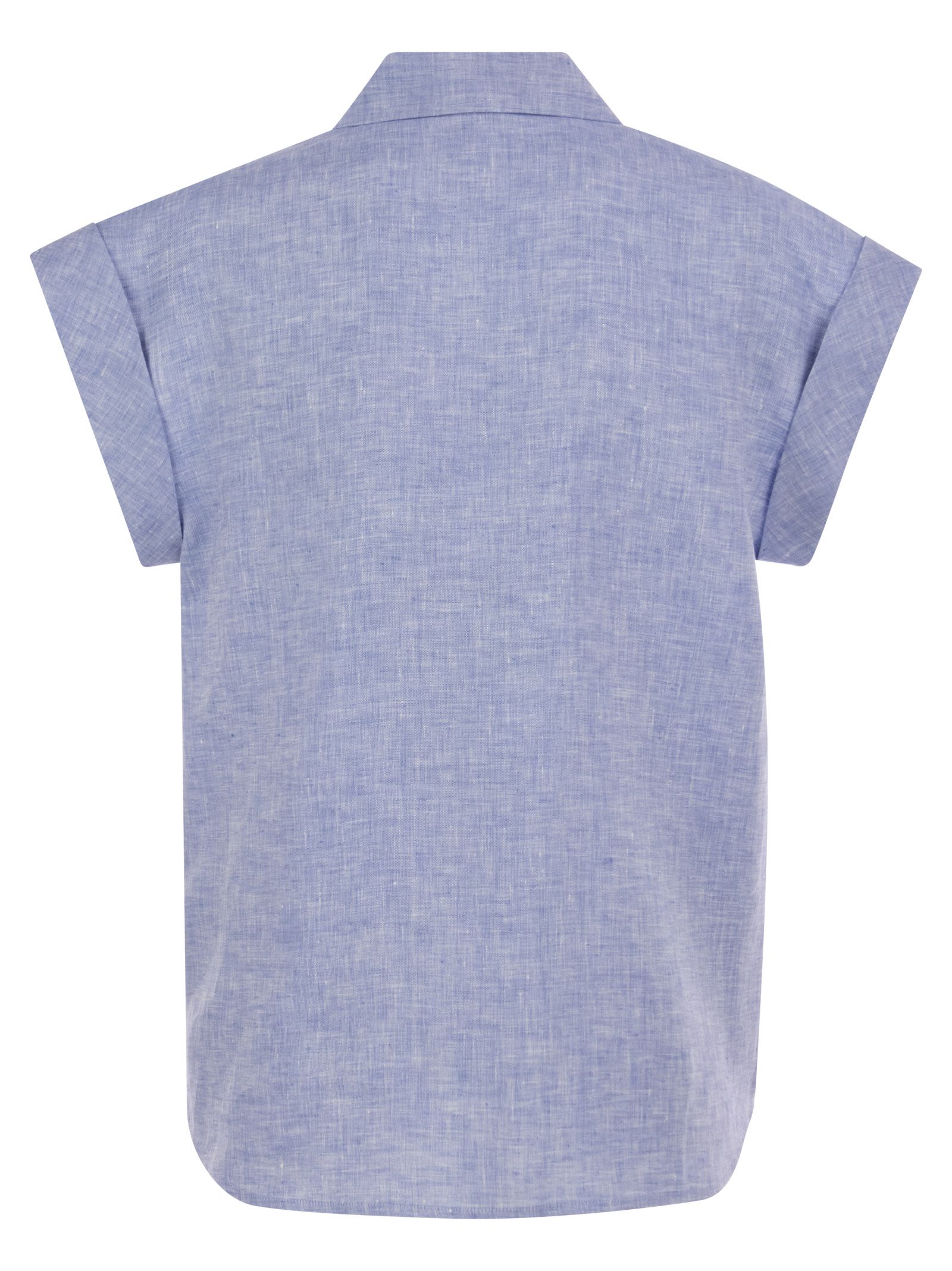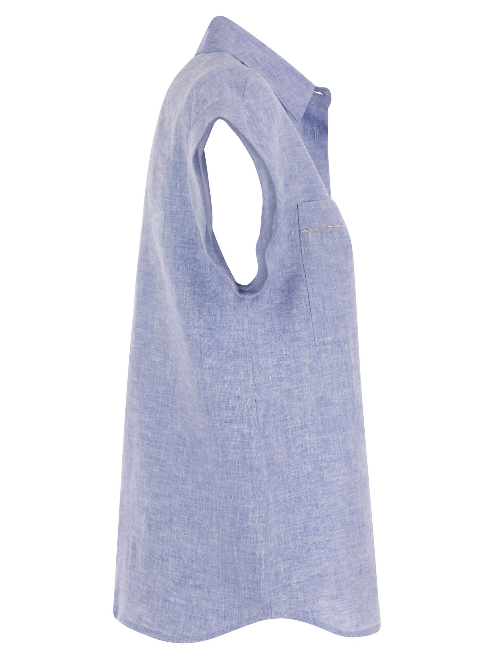 Sleeveless shirt with precious Punto Luce detail on pockets in lightweight pure linen canvas. - Shirt with sail collar - Short kimono sleeves turned up - Patch pockets on chest - Stitch light detail on pockets - Regular fit - Front button fastening DESIGNER ID: S06263 02600 988