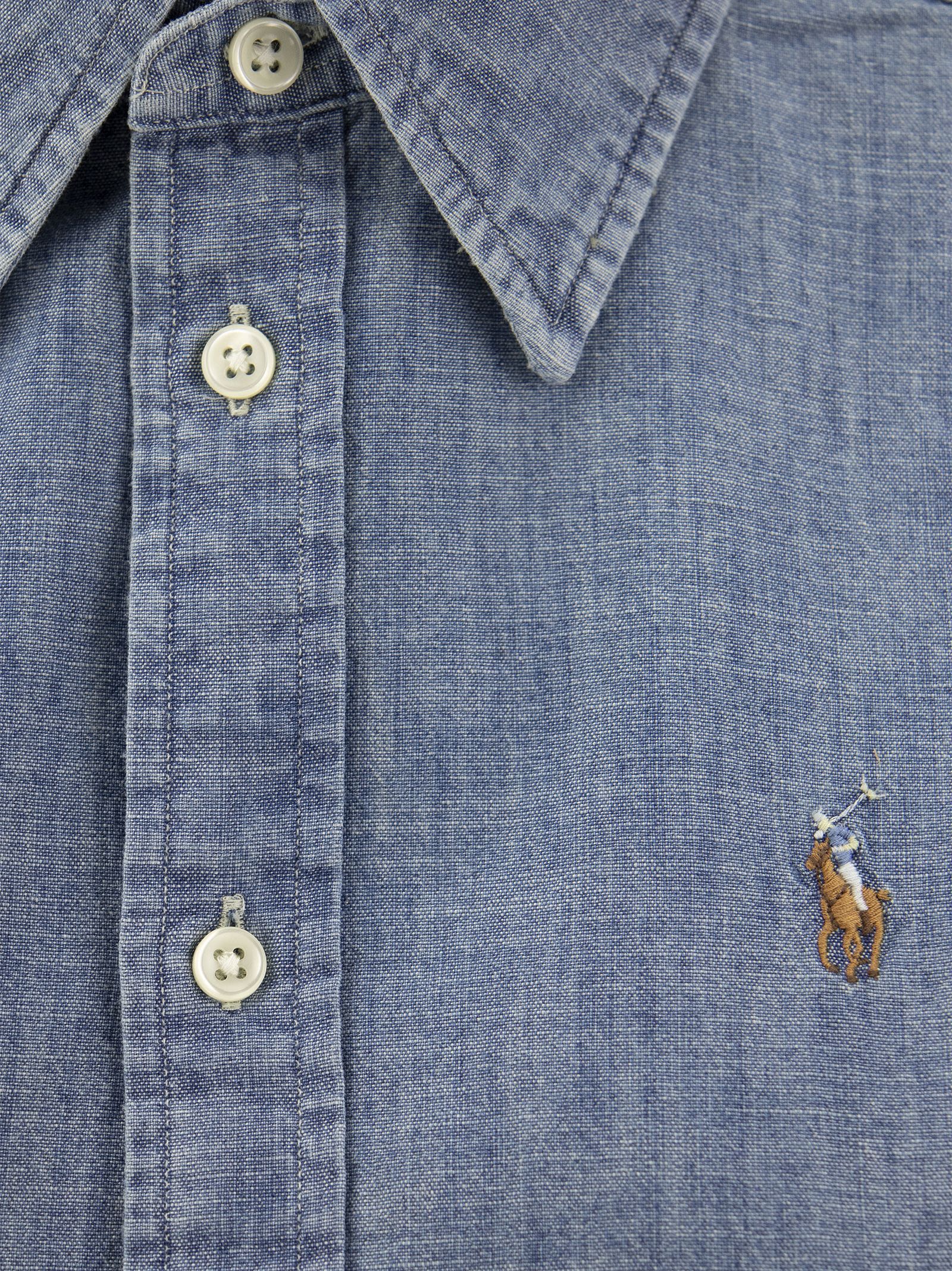Made from soft cotton, this shirt combines the tailored lines of a button-down with the authentic style of chambray fabric. The shirt is finished with the signature embroidered pony on the chest. - Straight cut - Pointed collar - Button down collar - Long sleeves with button cuffs - Exclusive embroidered pony on the left chest side DESIGNER ID: 211806182 001