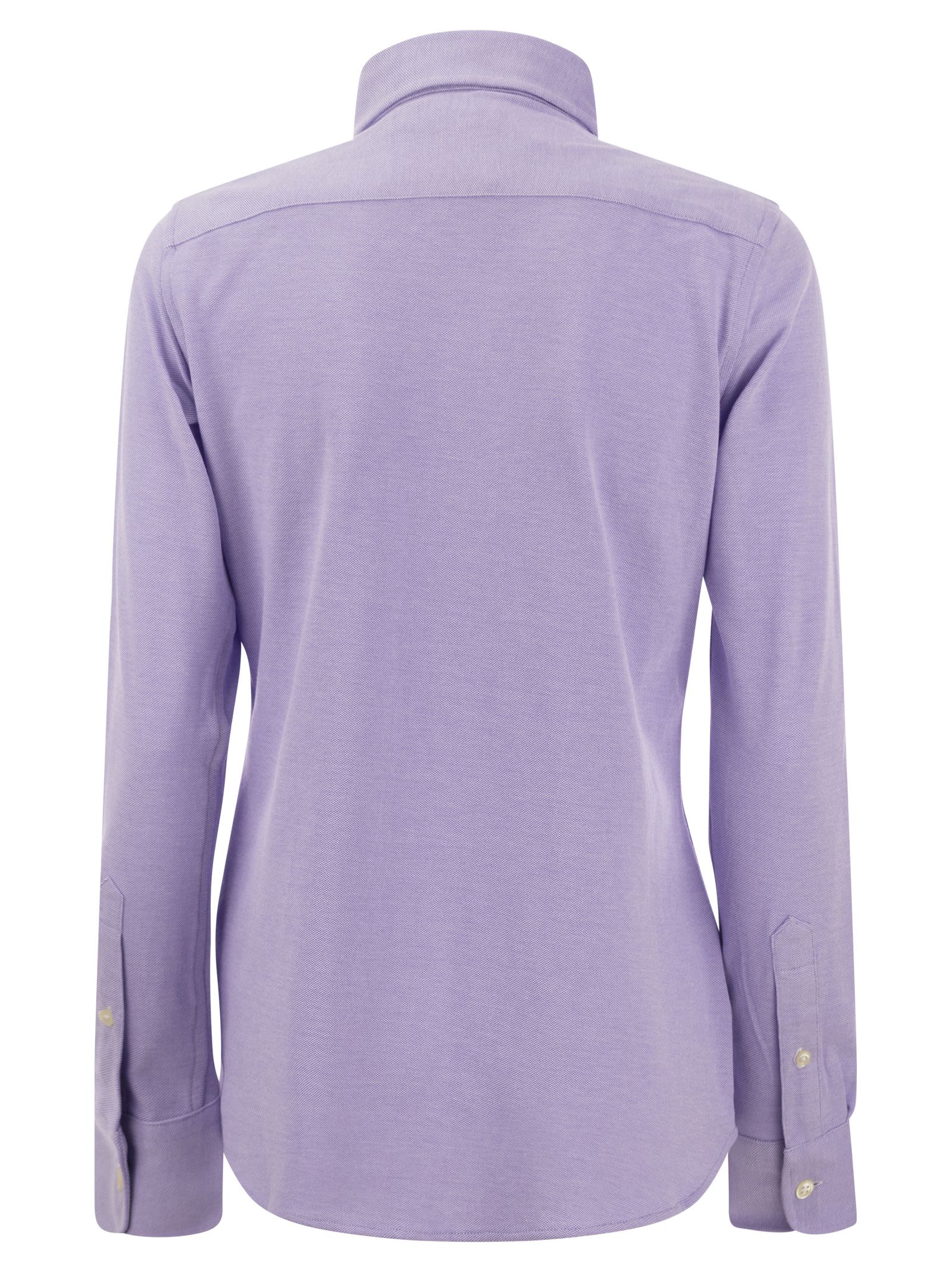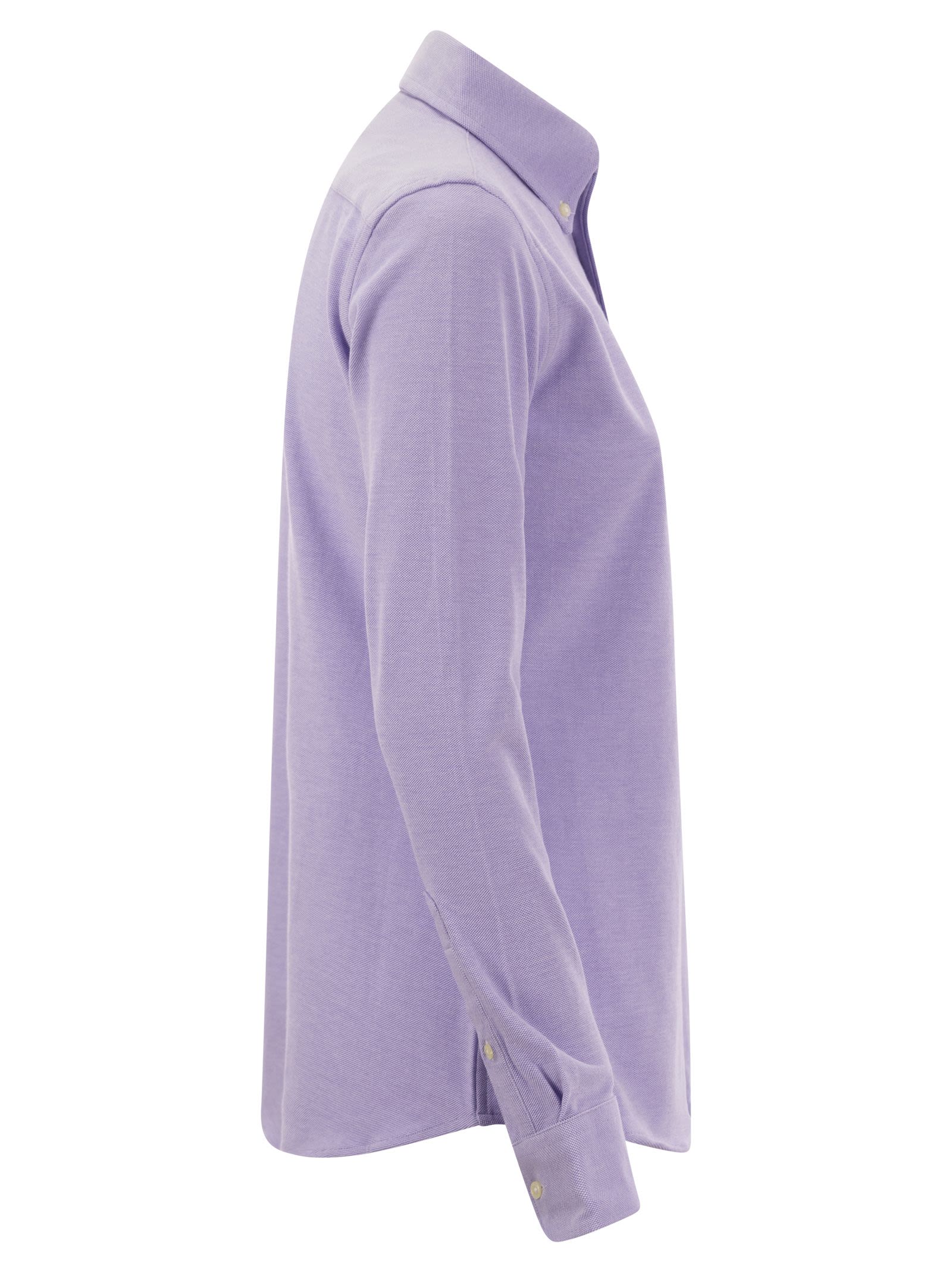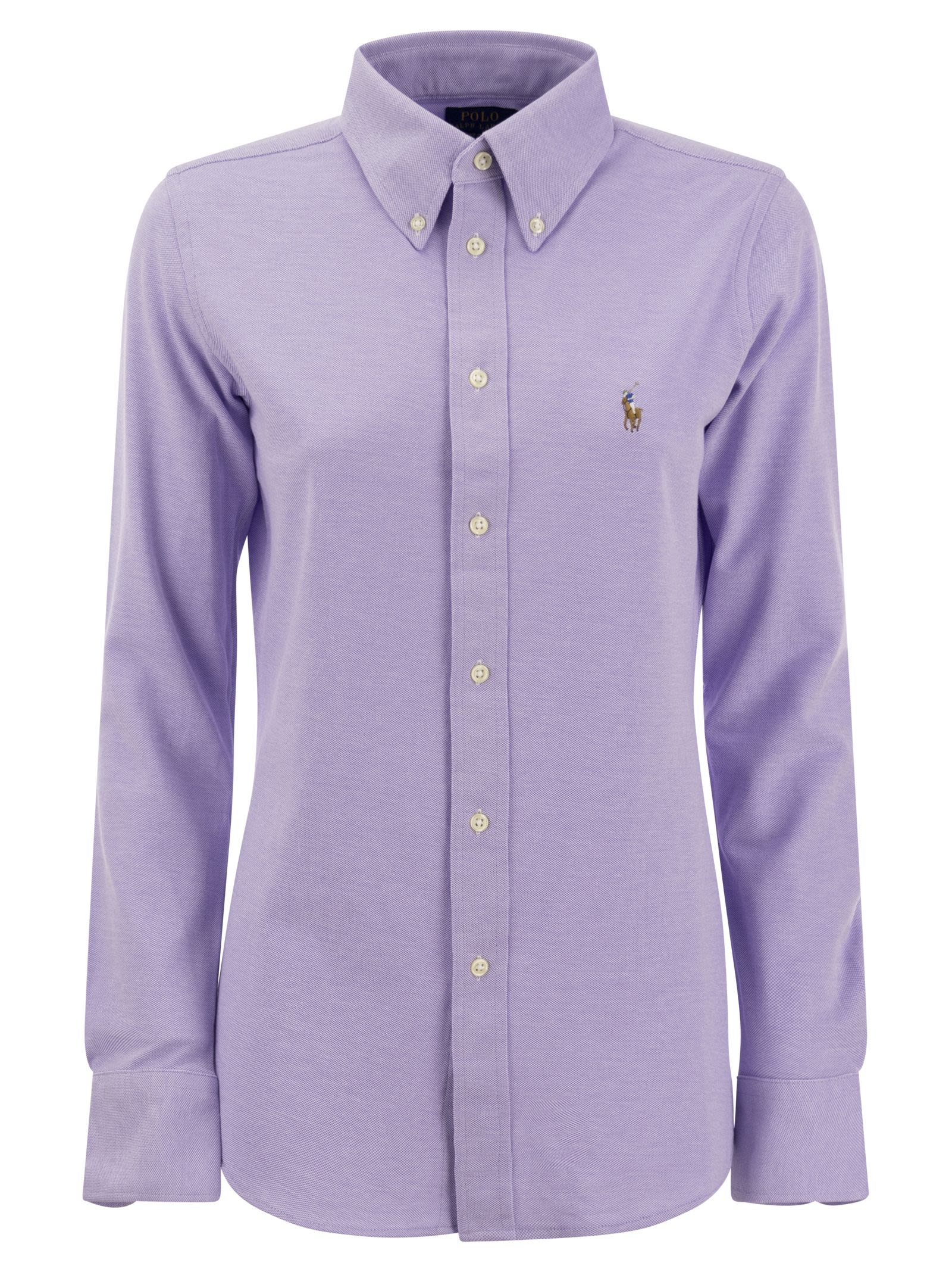 The first piece of women's clothing offered by Ralph Lauren was not a suit or a coat, but an Oxford shirt, made at the same factory that produced the men's version, taking inspiration from the latter. - Pointed collar button-down - Long sleeves with button cuffs - Pleats on the back - Hemmed flap - Exclusive multicoloured pony embroidered on the left chest side DESIGNER ID: 211924258 001