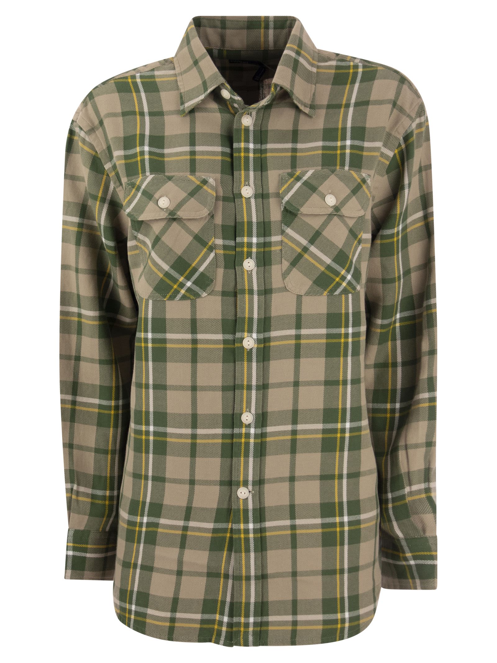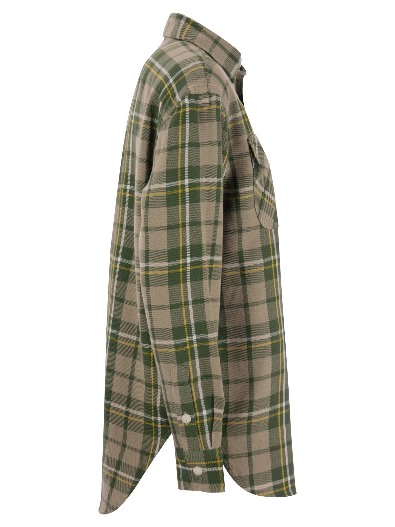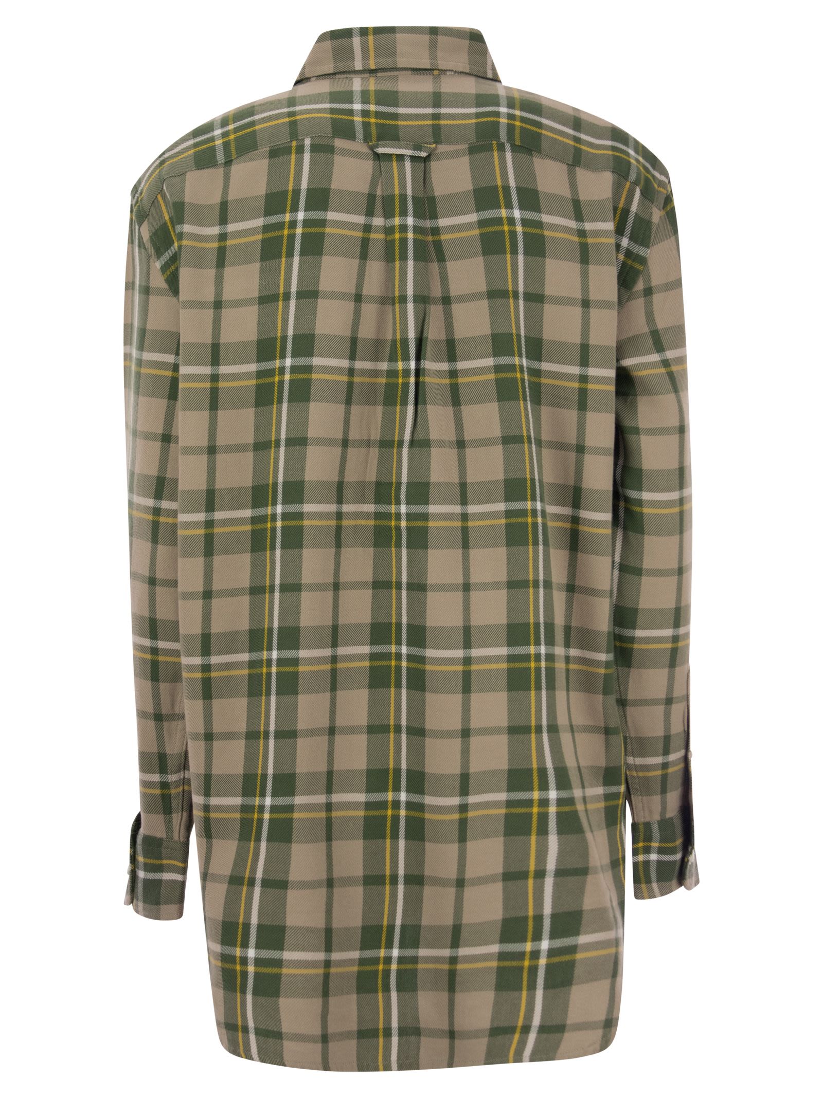 Characterised by a soft cut and made of yarn-dyed cotton twill, this shirt features an all over plaid pattern. - Soft cut - Length at the hips - Pointed button-down collar - Button-down collar - Long sleeves with button cuffs - Low shoulders - Two buttoned chest pockets - Back yoke with cannon pleats and hanging loop - Hemmed flap DESIGNER ID: 211910780 001