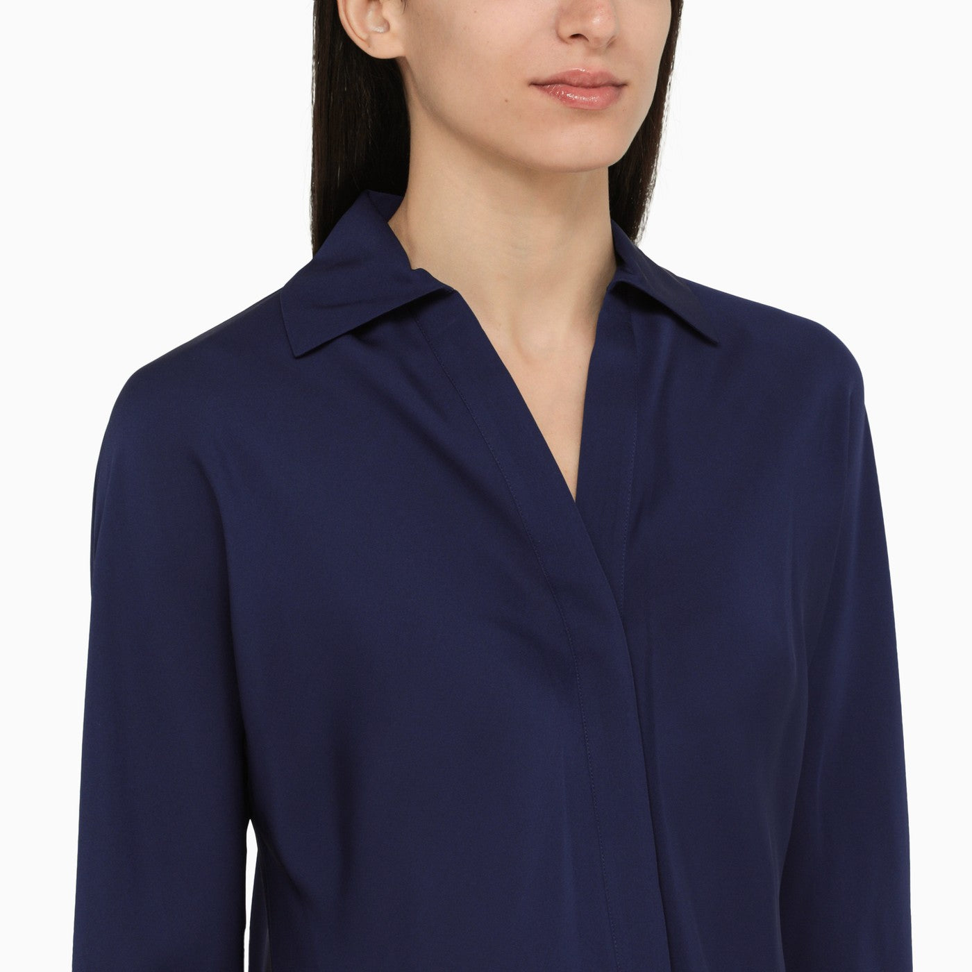 Blue silk shirt from Vince featuring long sleeves, a V-neck, a concealed front button fastening and single button cuffs.