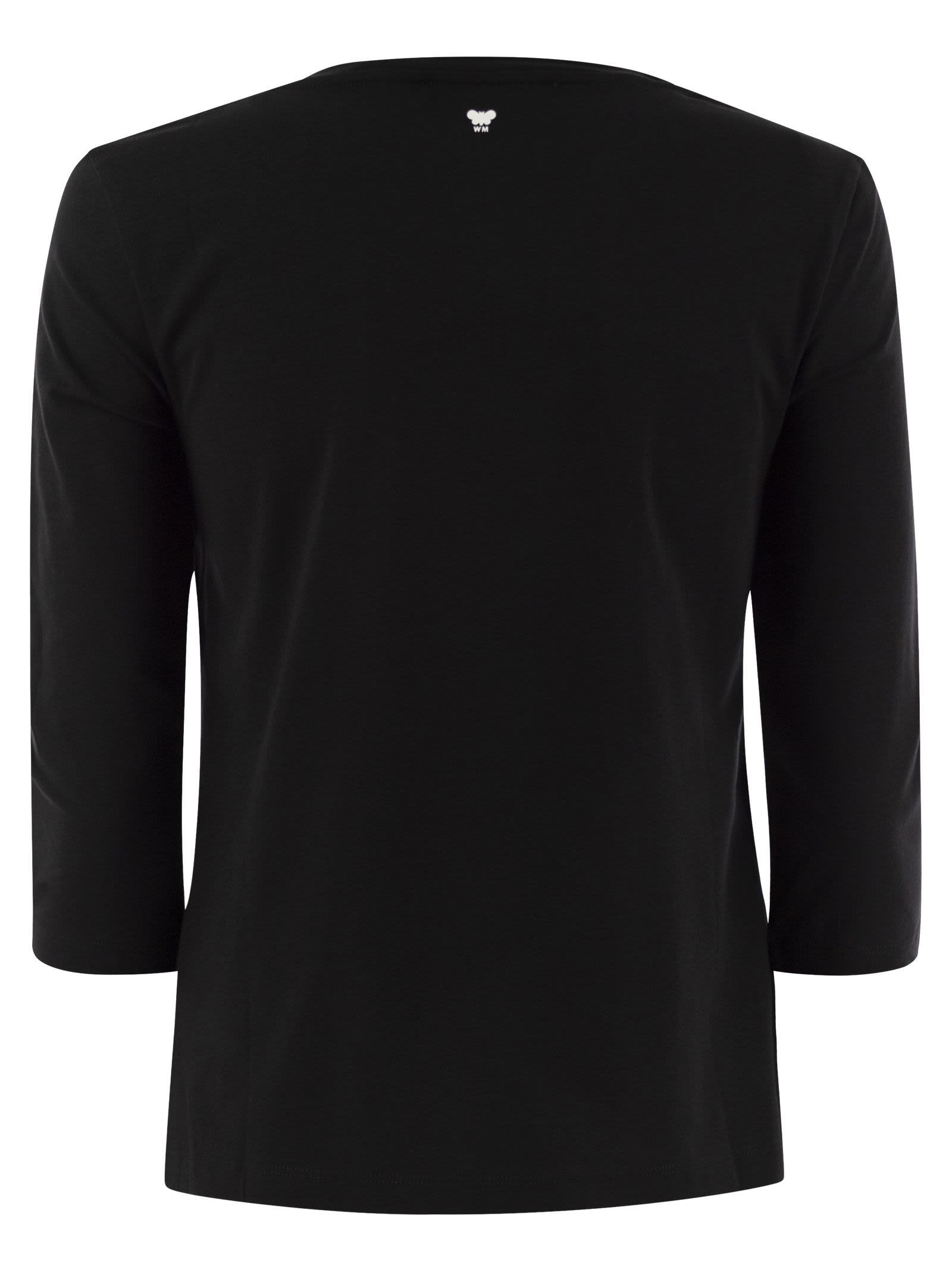 T-shirt in soft organic stretch cotton jersey, featuring a boat neckline and 3/4 sleeves. Straight fit, personalised with a butterfly logo printed on the back of the neck. The main fabric of this garment contains at least 50% organically grown cotton fibre. - 3/4 sleeves - Boat neckline - Straight line DESIGNER ID: 2525946031600 007