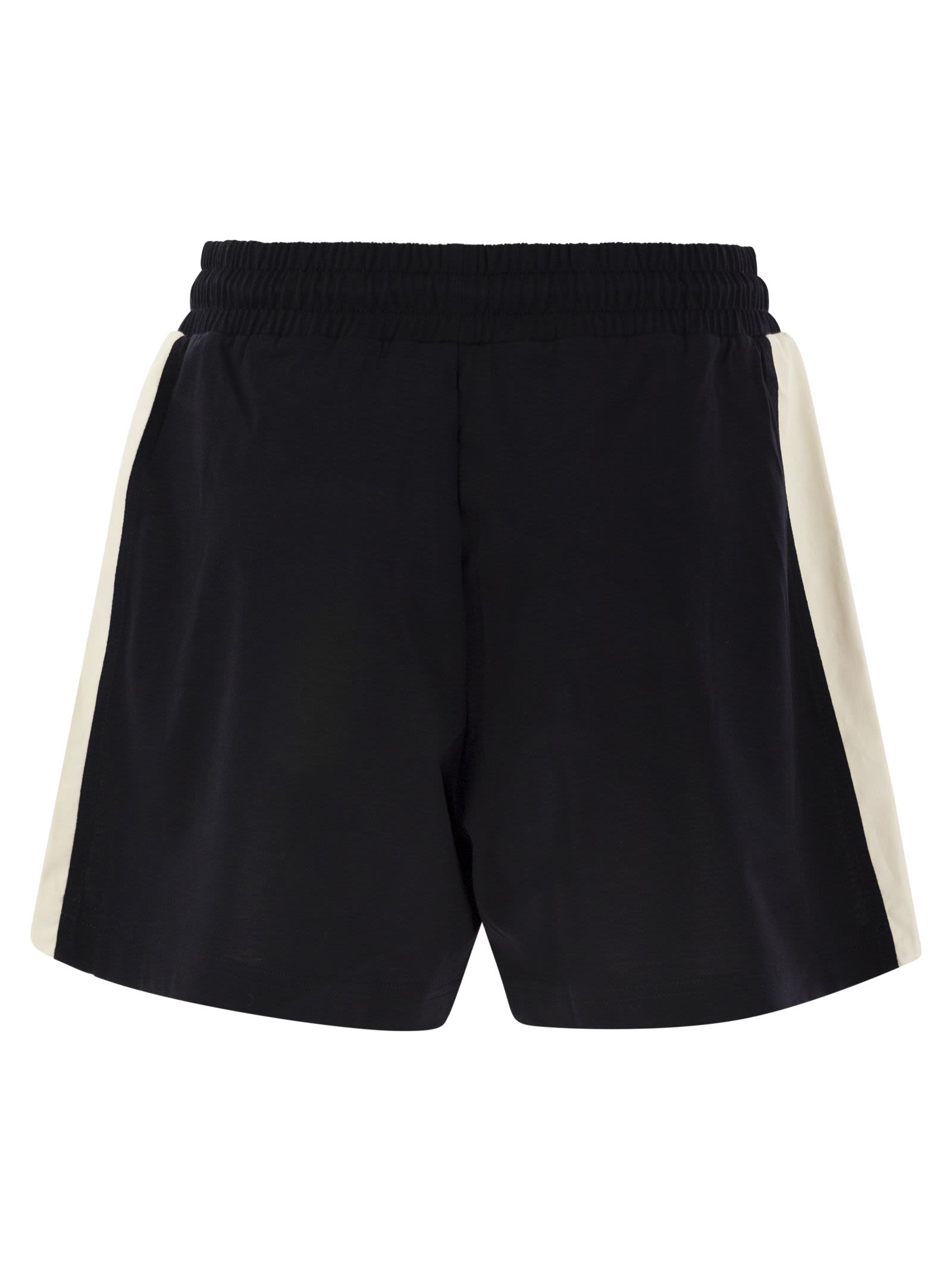 These relaxed-fit shorts are made of jersey. Poplin inserts complete the garment. Pair with the coordinating polo shirt for a total summer look. - Jersey - Poplin insert - Elasticized waistband with drawstring - Logo DESIGNER ID: J10938H0001689AJU 778
