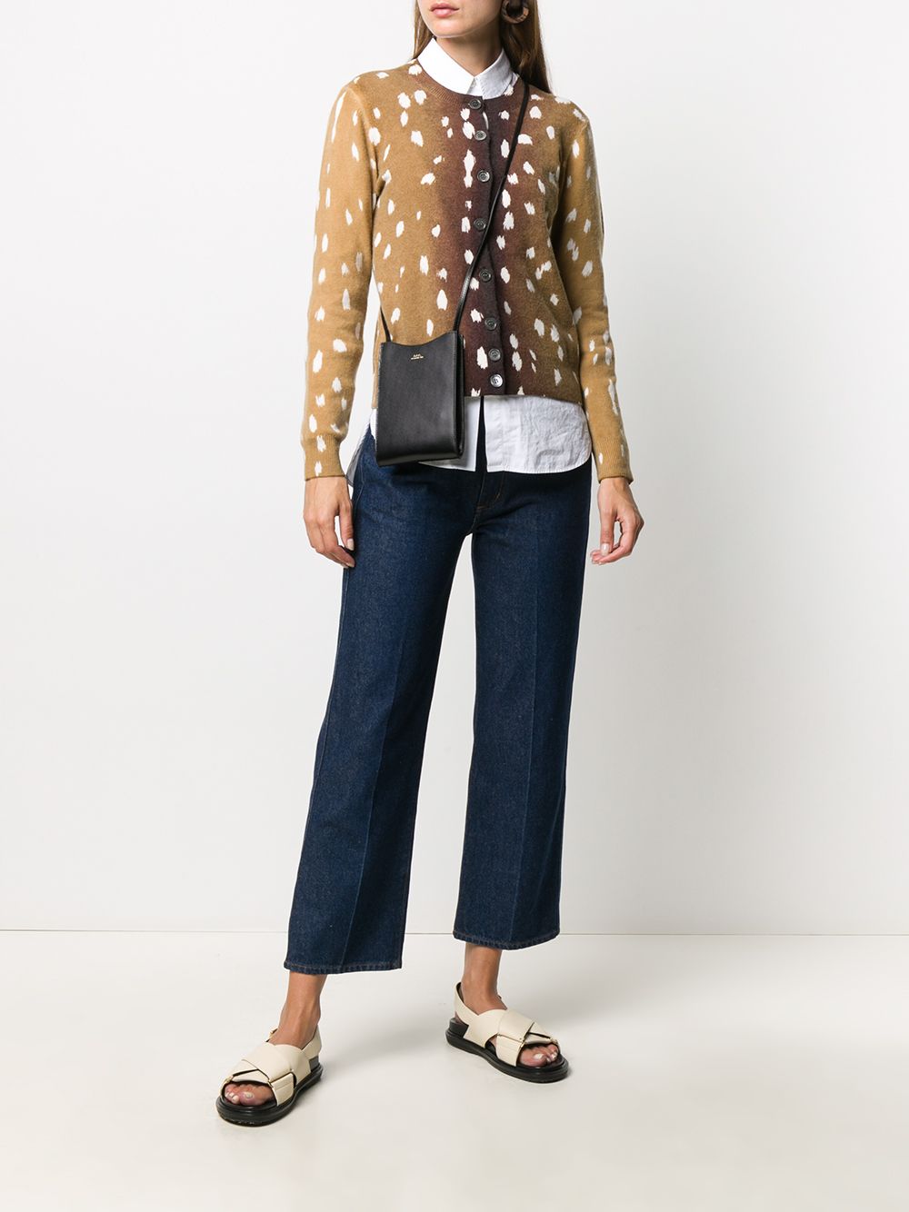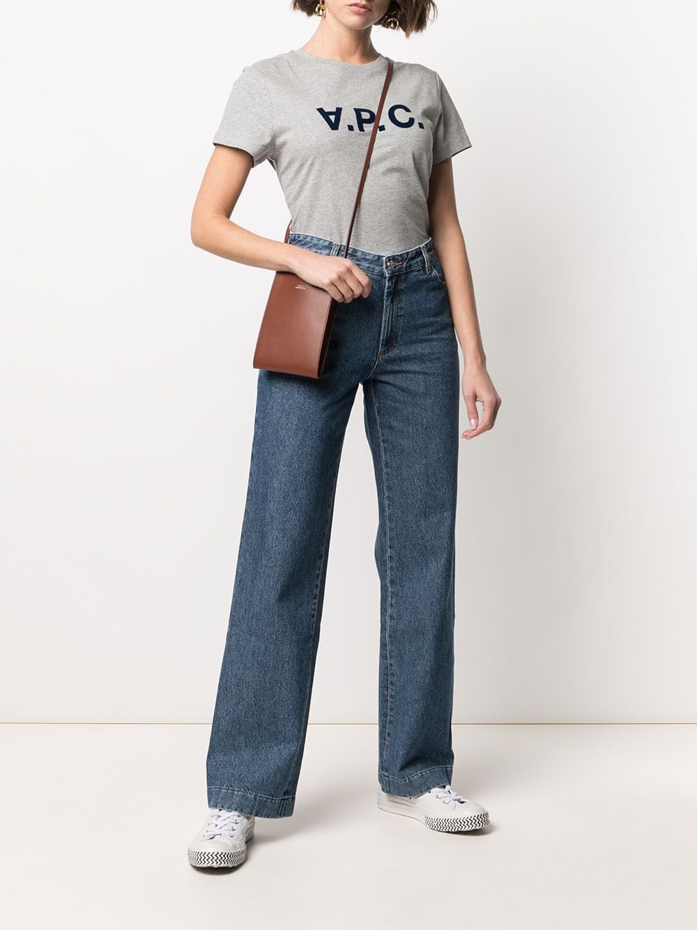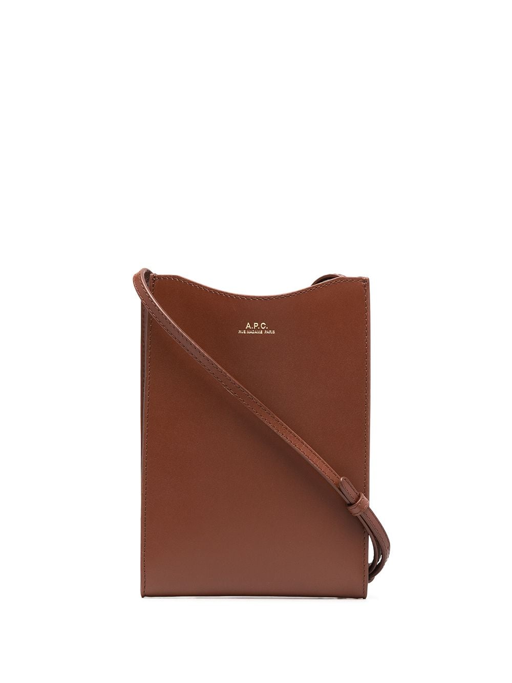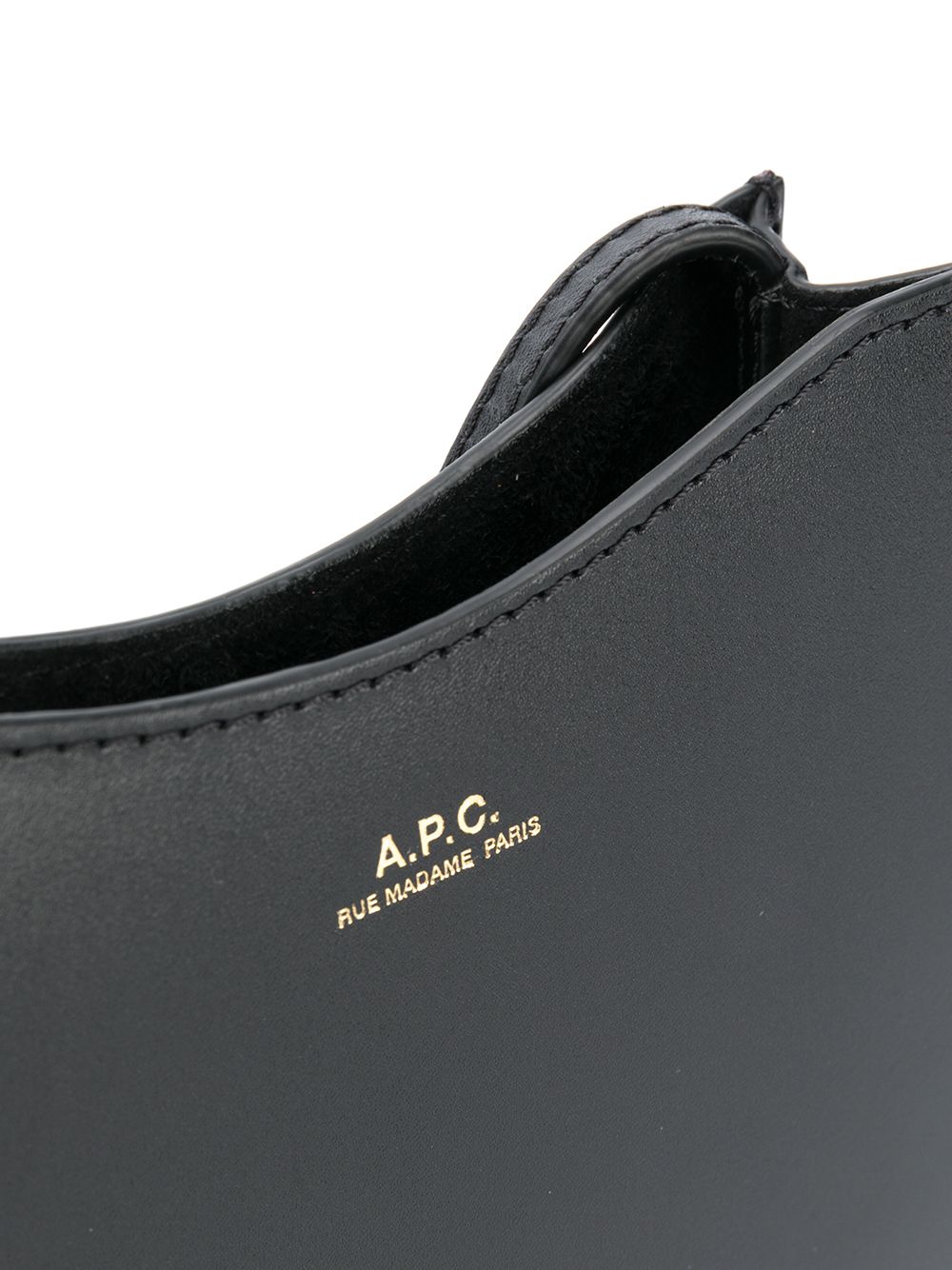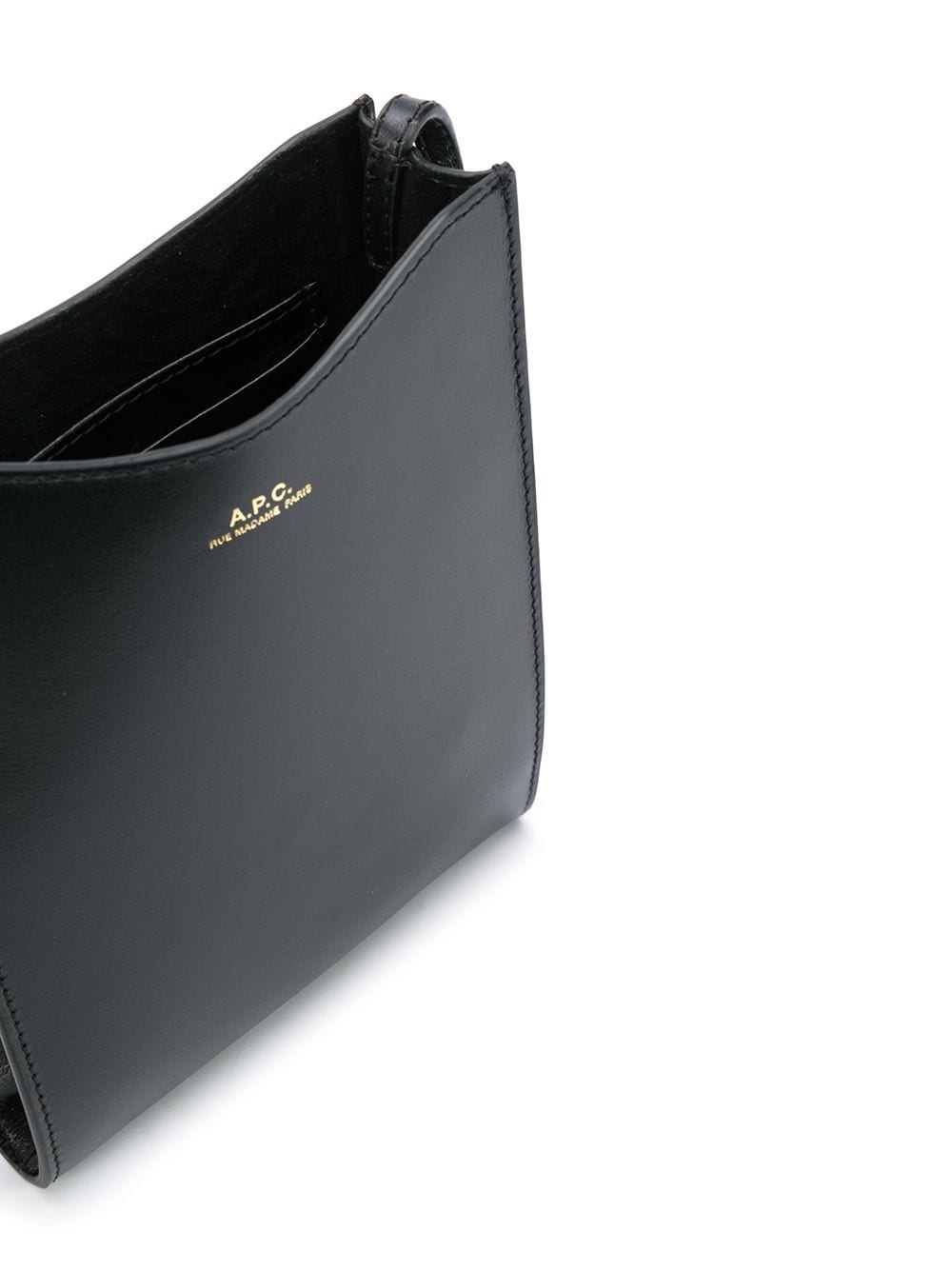 Leather crossbody satchel bag from A.P.C. featuring embossed logo to the front, open top and crossover strap detail.