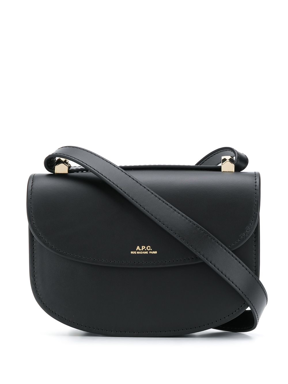 Leather mini Genève crossbody bag from A.P.C. featuring gold-tone hardware, gold-tone logo plaque, foldover top with magnetic fastening and adjustable shoulder strap.