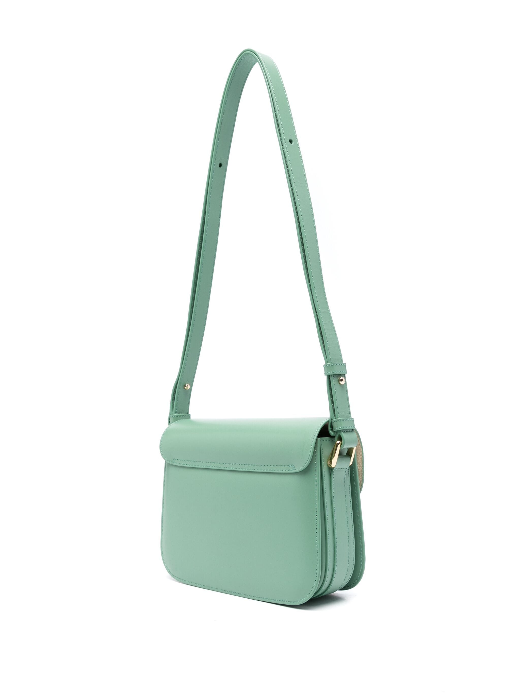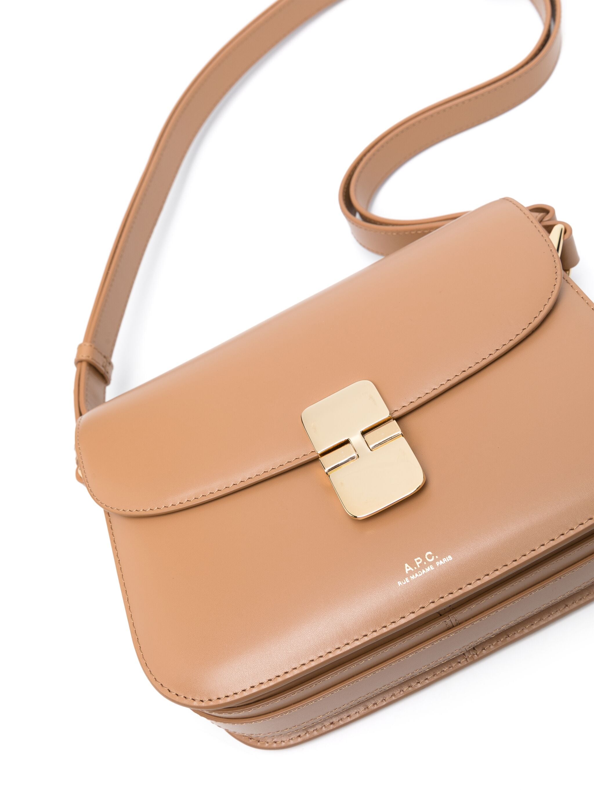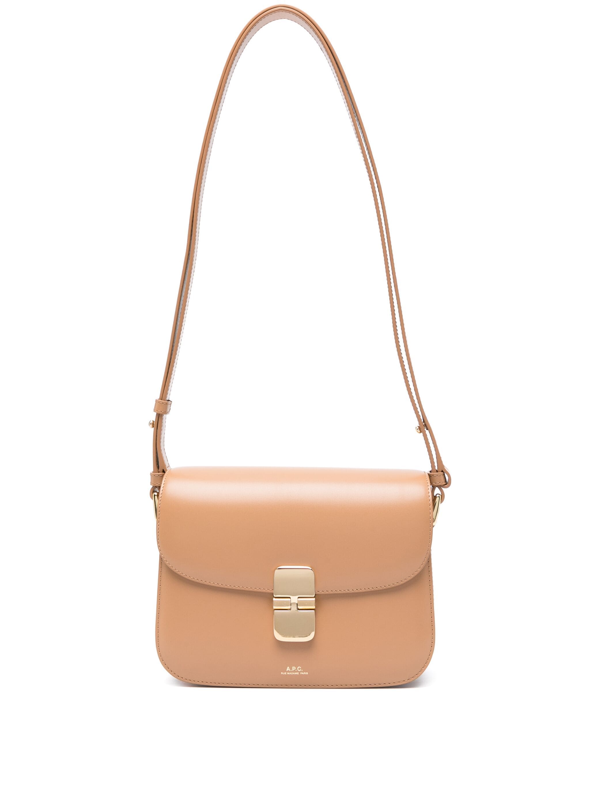 Leather and cotton logo stamp shoulder bag from A.P.C. featuring a foldover top, an adjustable shoulder strap and gold-tone hardware.