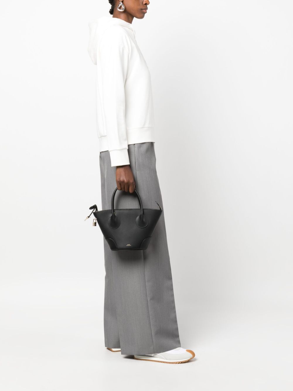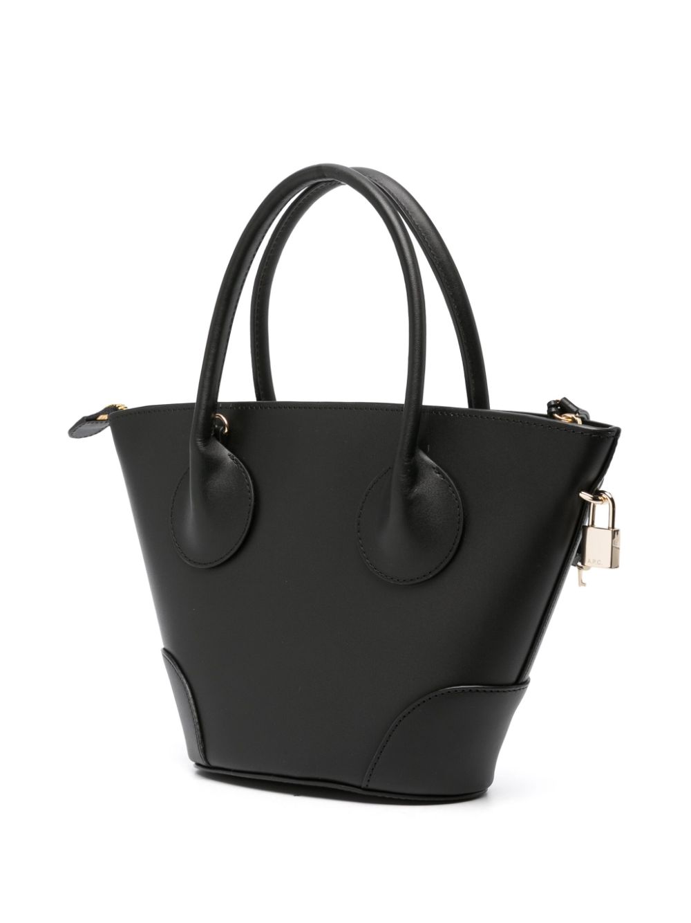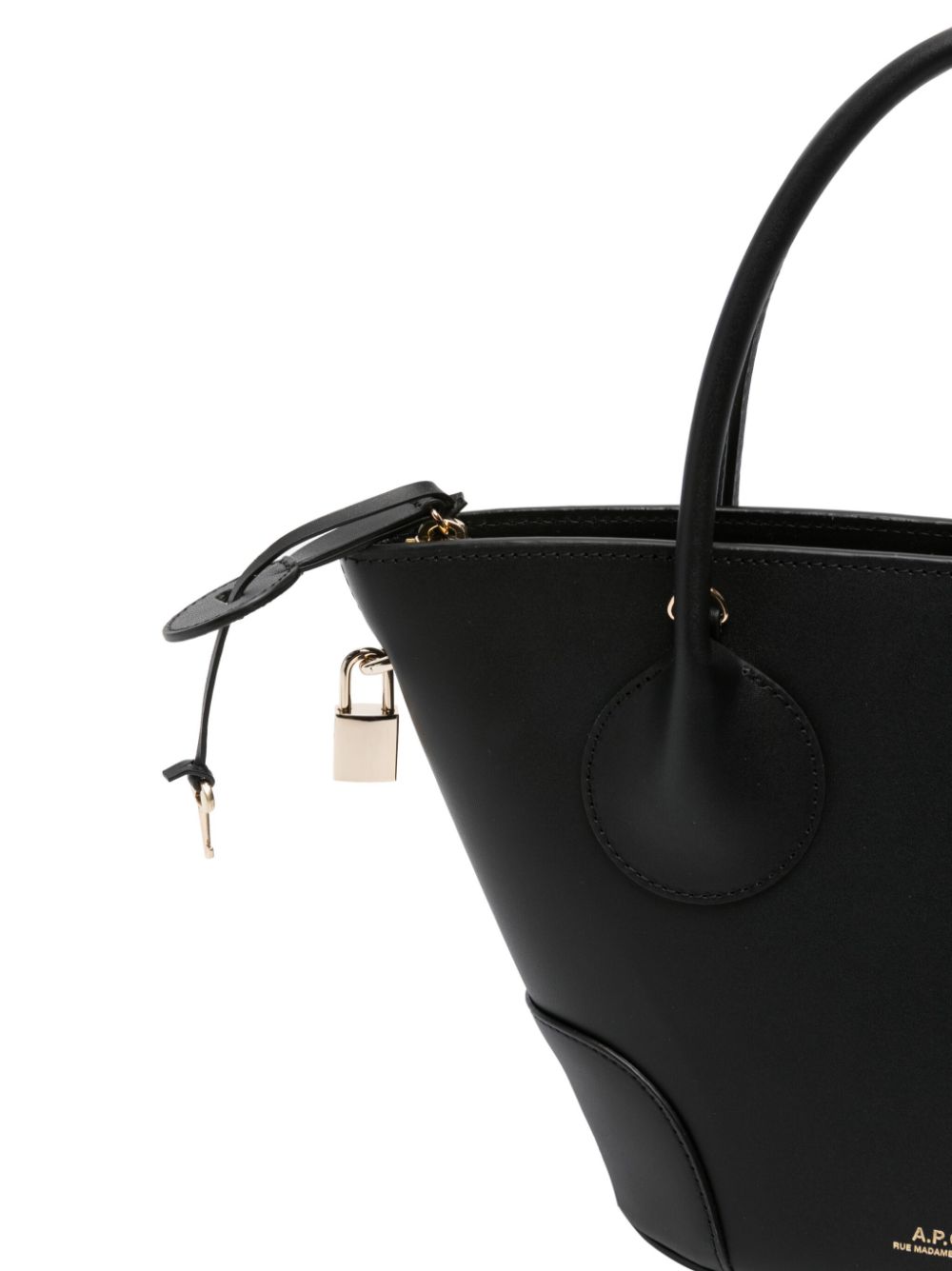 logo-print leather tote bag from A.P.C. featuring calf leather, cotton lining, logo print to the front, hanging key fob, two top handles, top zip fastening, internal zip-fastening pocket and internal logo patch.