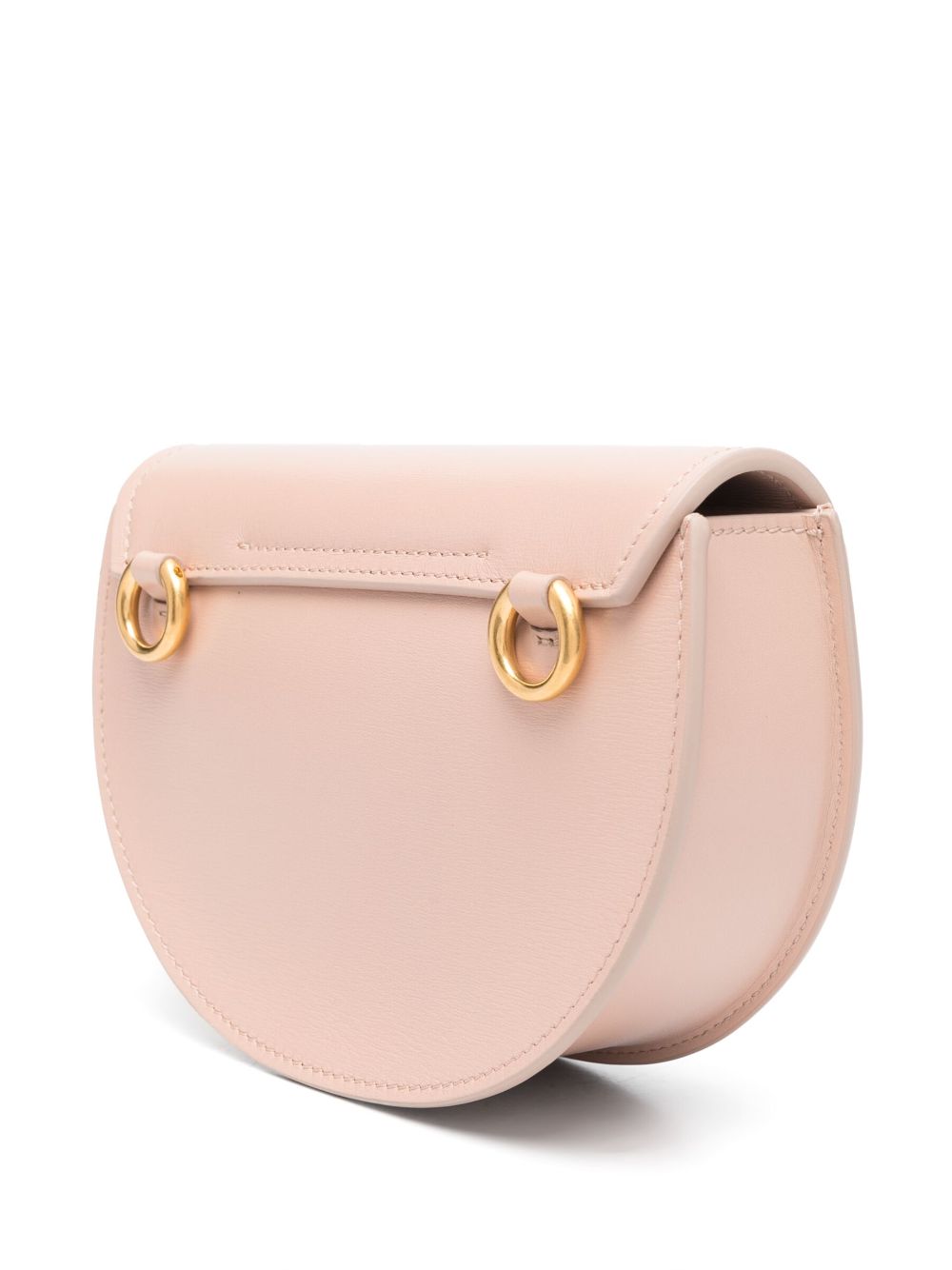 mini Marcie leather shoulder bag from CHLOÉ featuring powder pink, calf leather, smooth grain, tonal stitching, gold-tone hardware, gold-tone logo plaque, adjustable detachable shoulder strap, foldover top with magnetic fastening, main compartment, debossed internal logo and internal slip pocket.