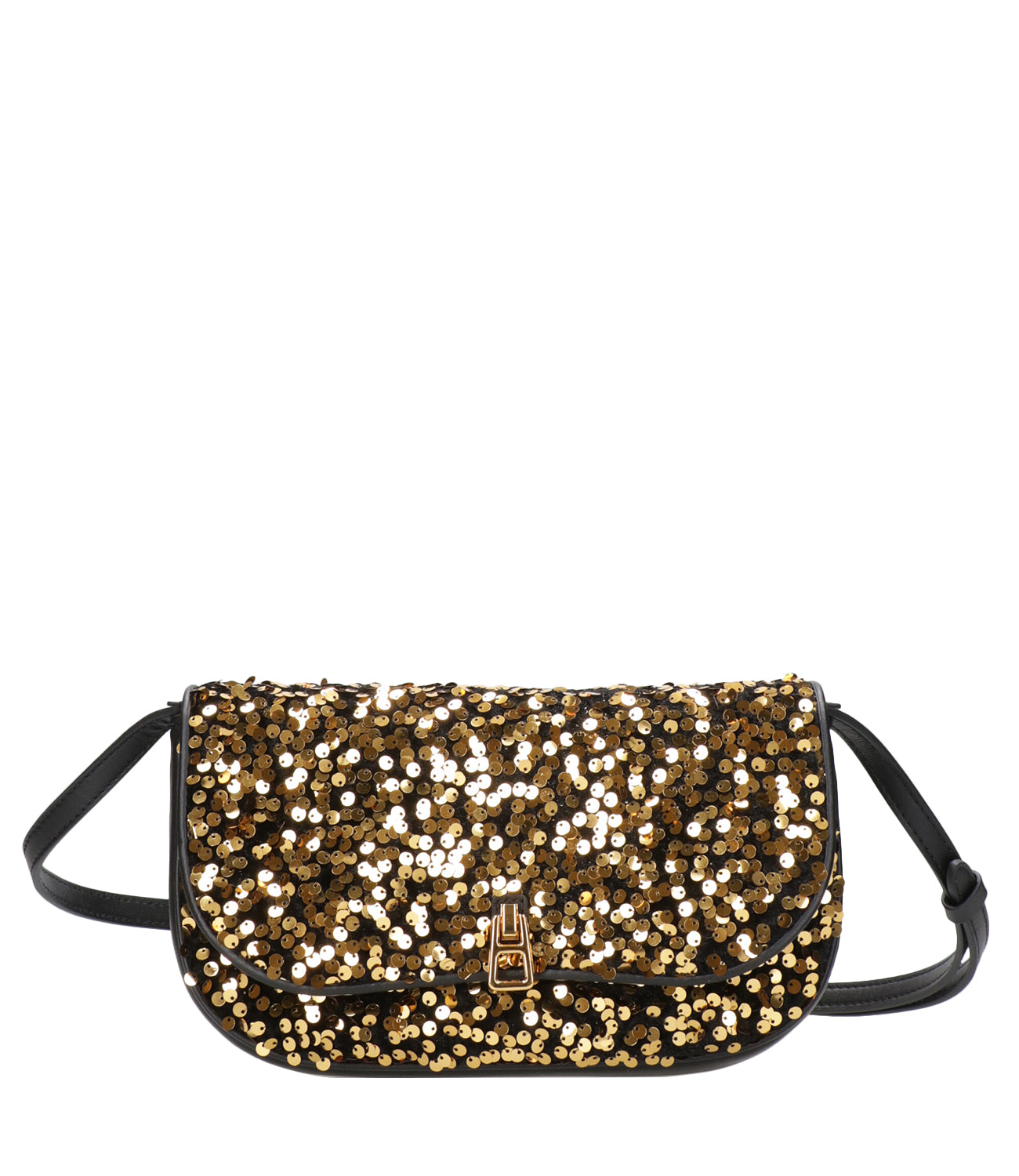 - Grained leather - All over sequin work on the front - Model with shoulder strap - Removable and adjustable leather shoulder strap with cufflinks - Flap closure with swivel - Logo on accessory placed on front - Internal card holder - Fabric interior - Dimensions: W 24cm H 13cm D 3cm - 500 gr.