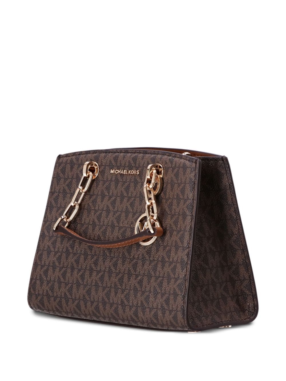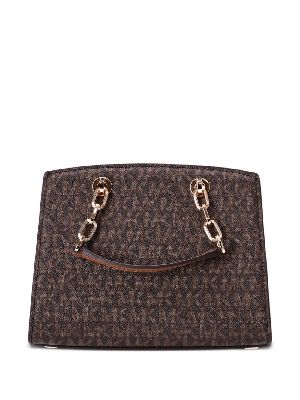 brown canvas signature Monogram canvas gold-tone logo lettering logo charm two chain-link top handles adjustable detachable shoulder strap metal feet gold-tone hardware