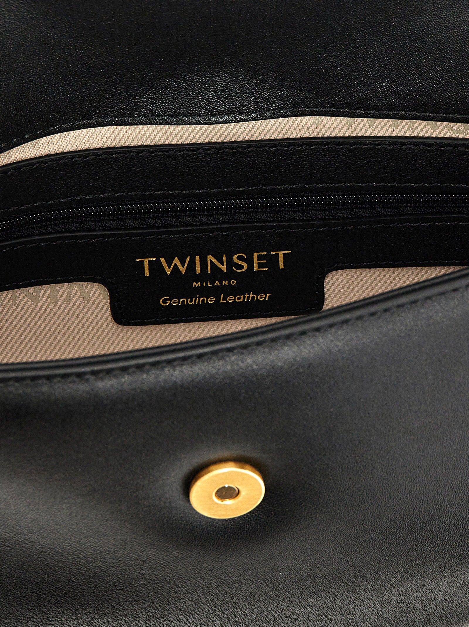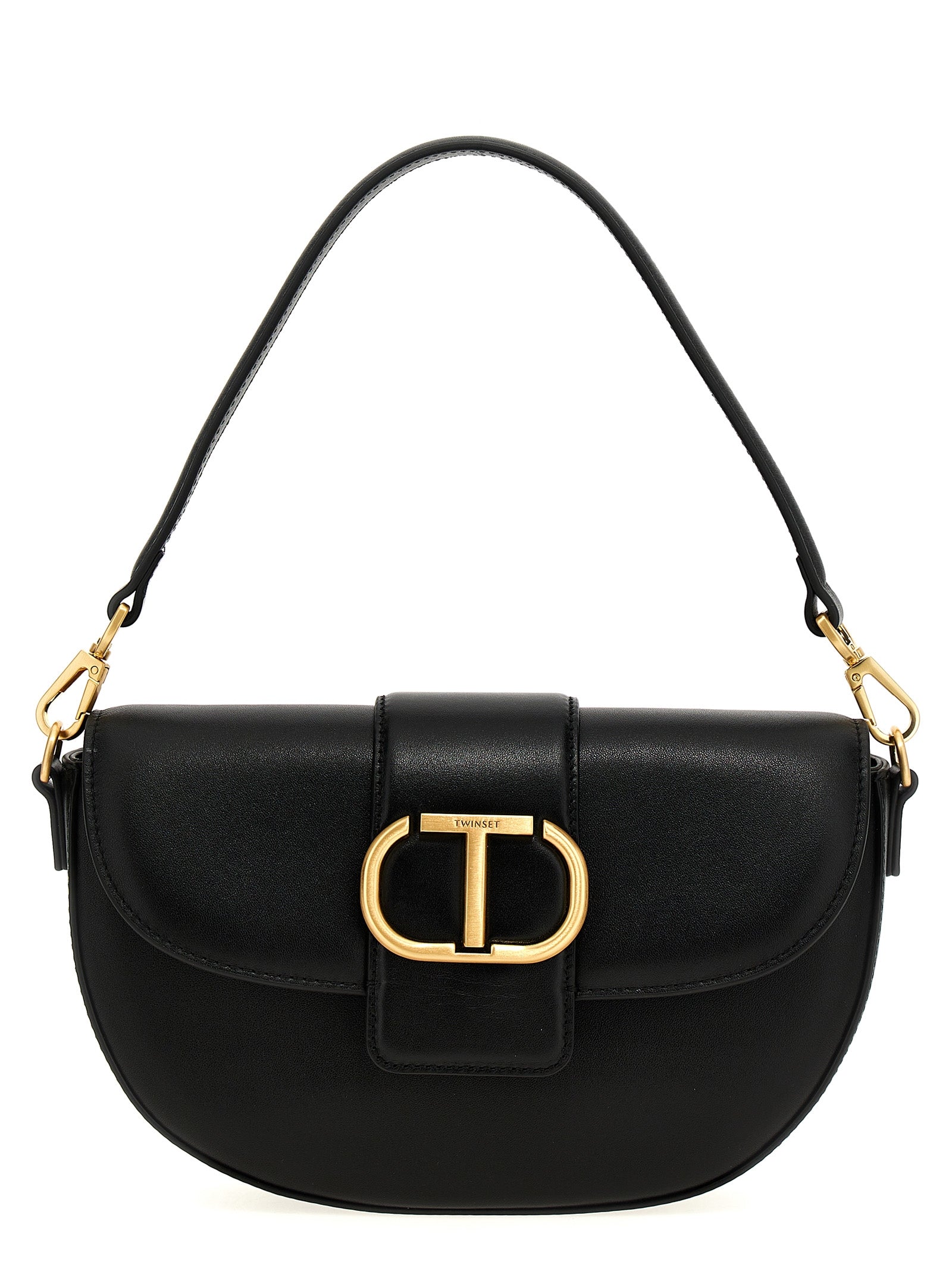 'Amie' leather shoulder bag, magnetic flap closure with metal Oval T logo on the front, removable sleeves, adjustable and removable shoulder strap