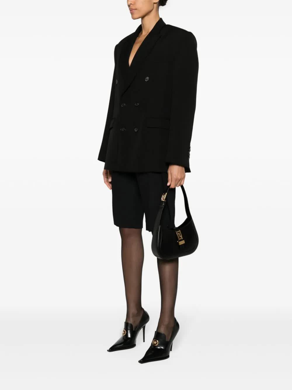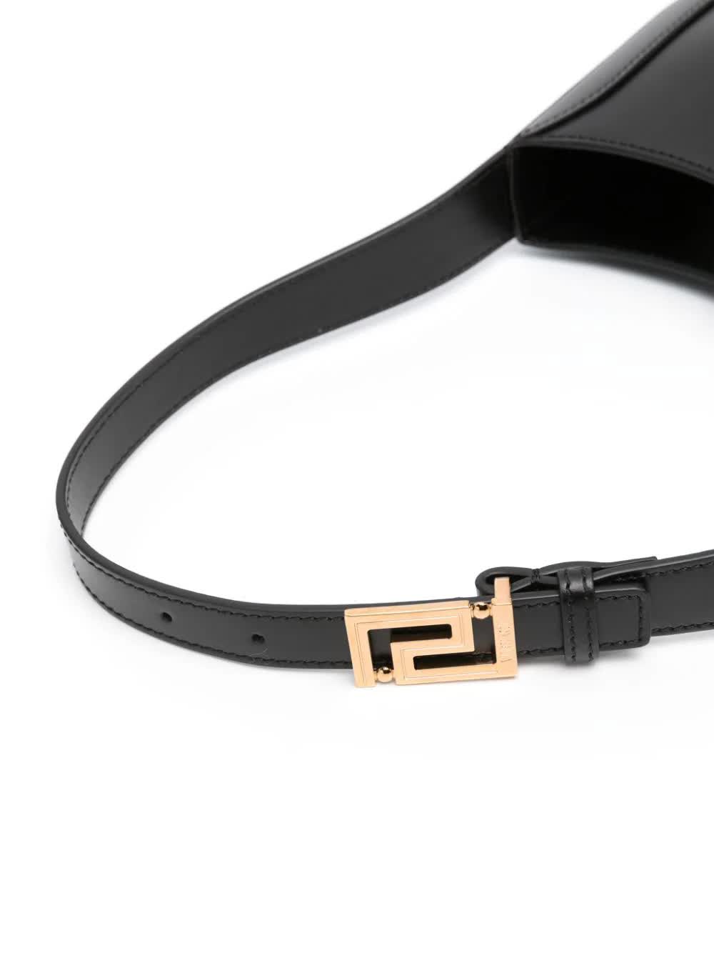 Versace features this small Greek Goddess Hobo Bag made of shiny leather.