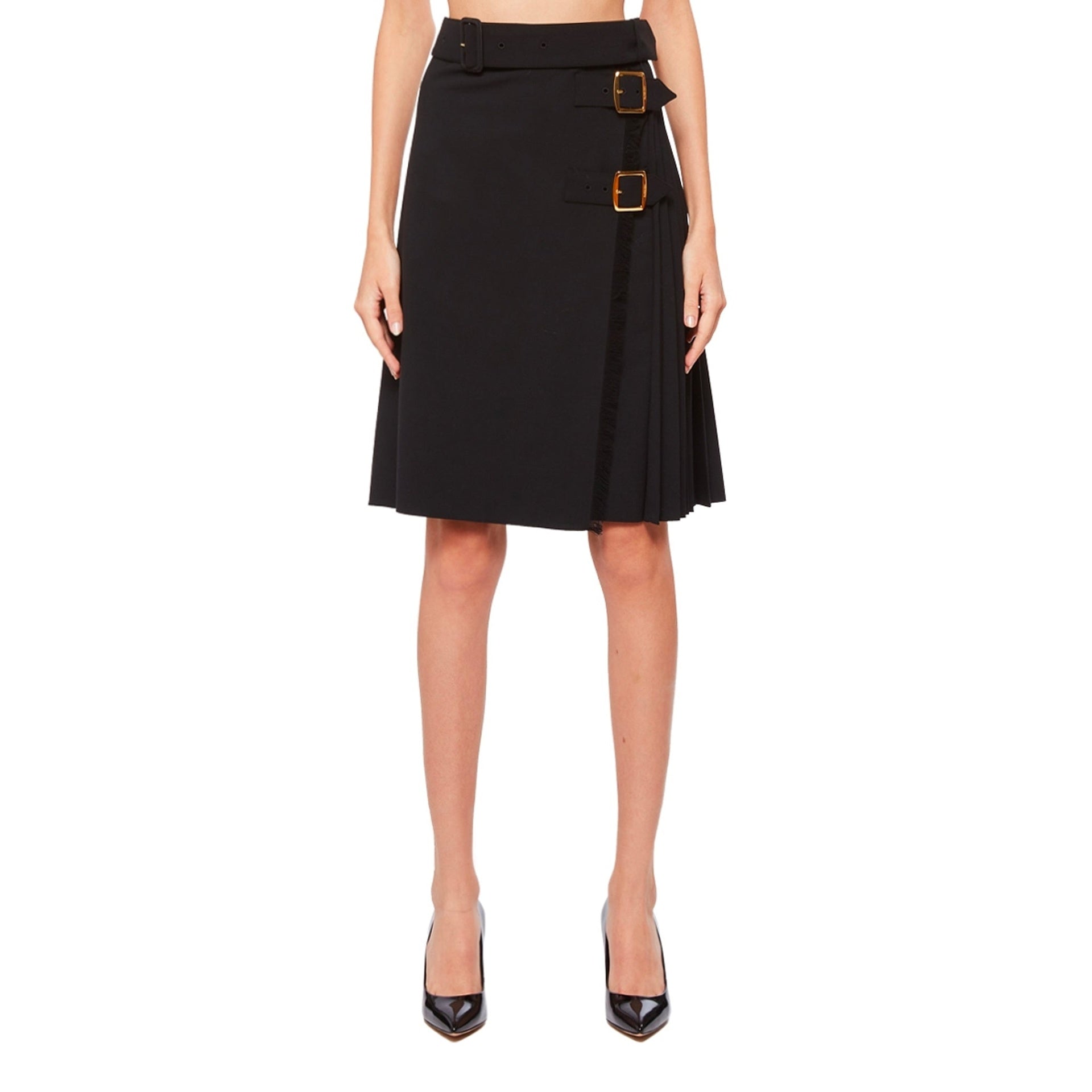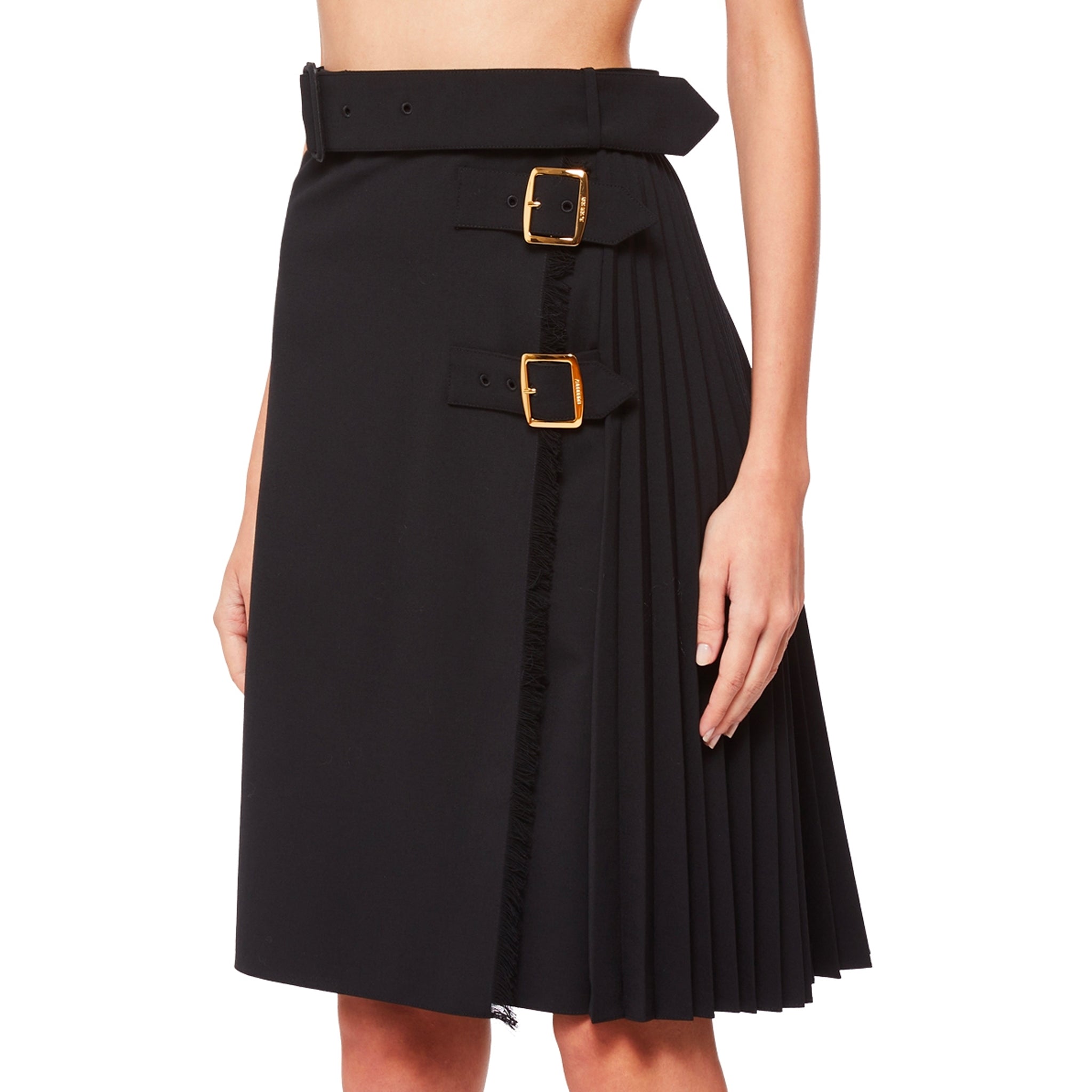 - Composition: 53% polyester, 43% wool, 4% elastane - Buttons: mother-of-pearl - Concealed side button and buckle closure - Dry clean - length: 55.5cm/21.8in - Made in Italy -