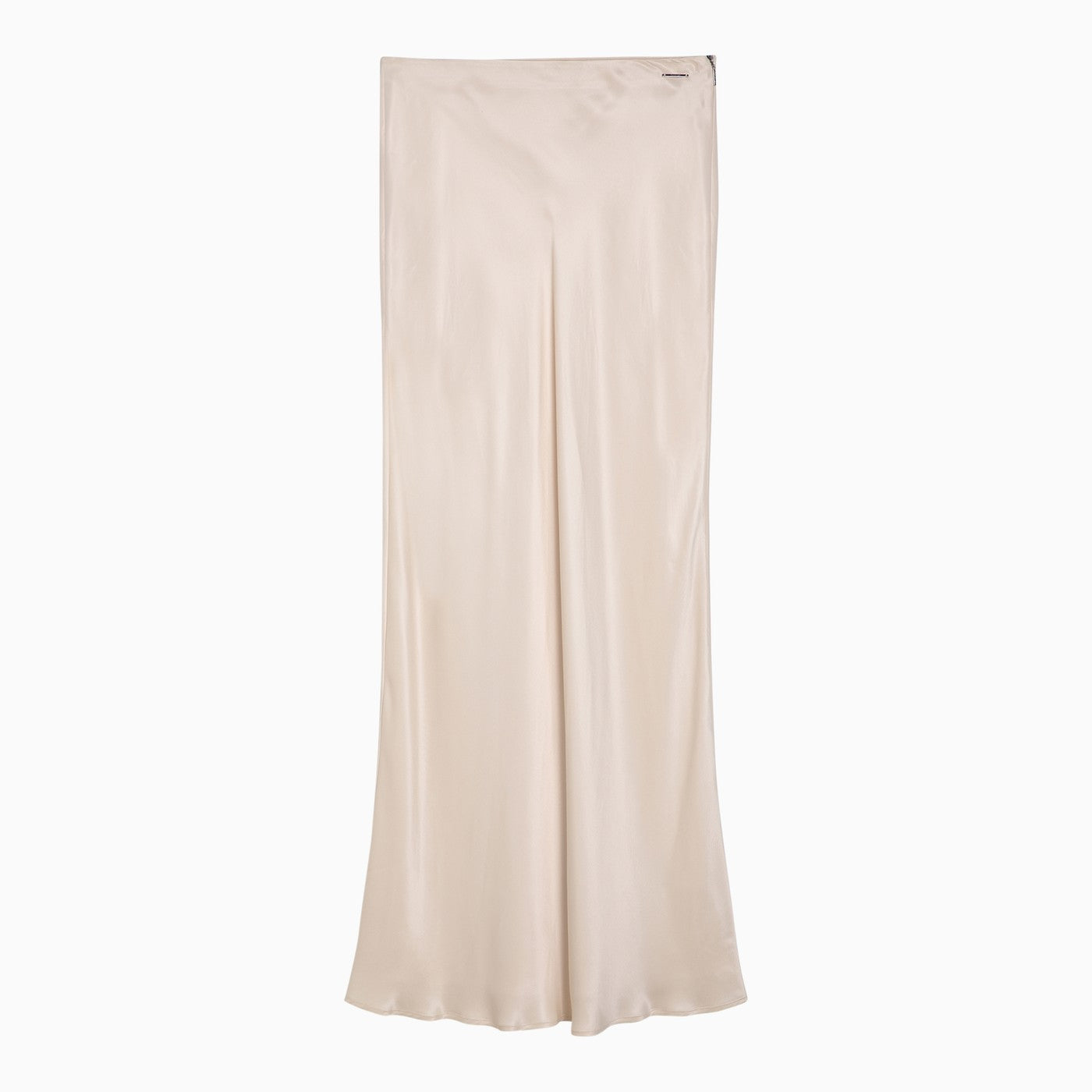 Cream-coloured viscose blend long skirt from Calvin Klein featuring side zip fastening and logo plaque on the front.