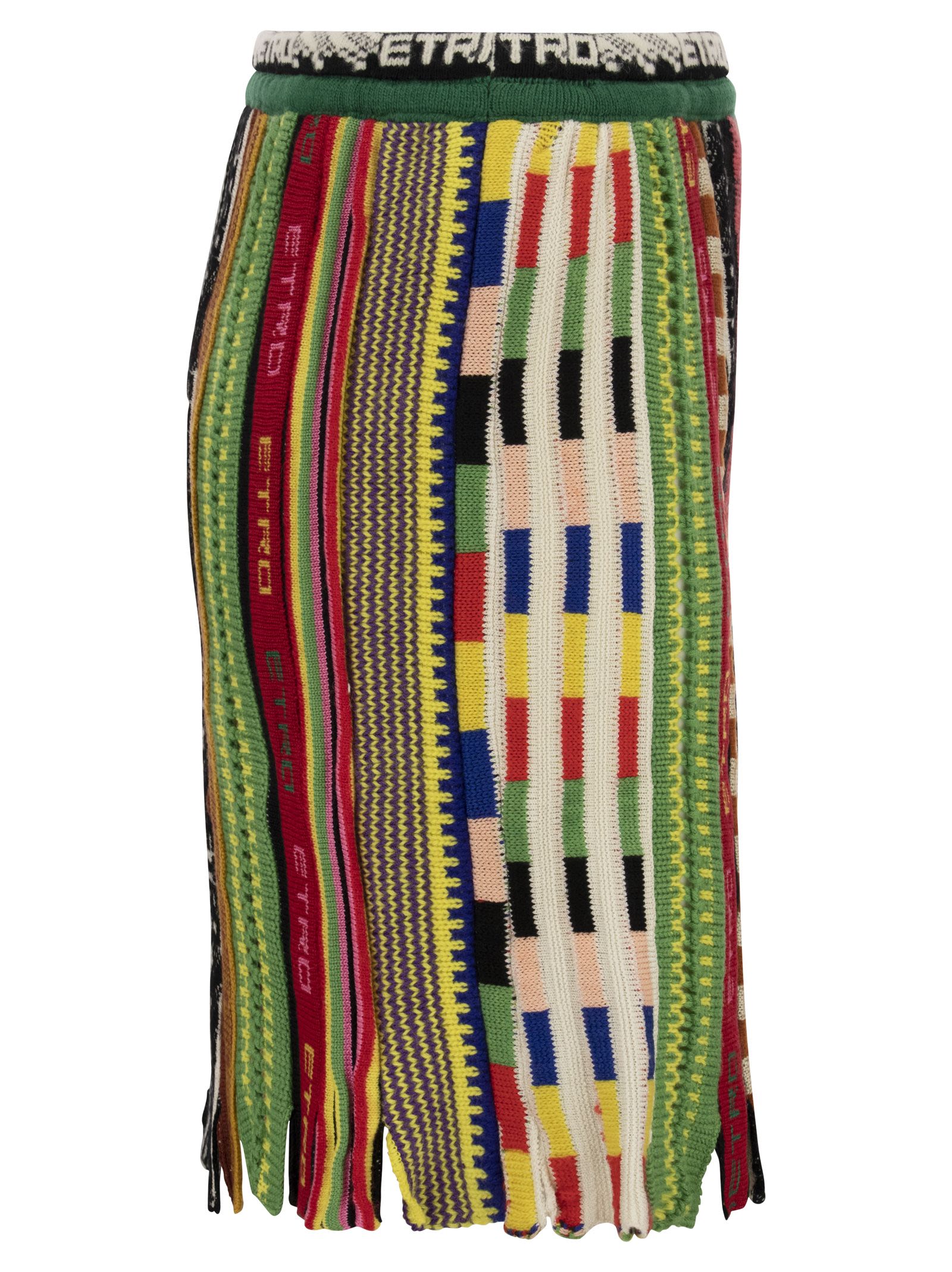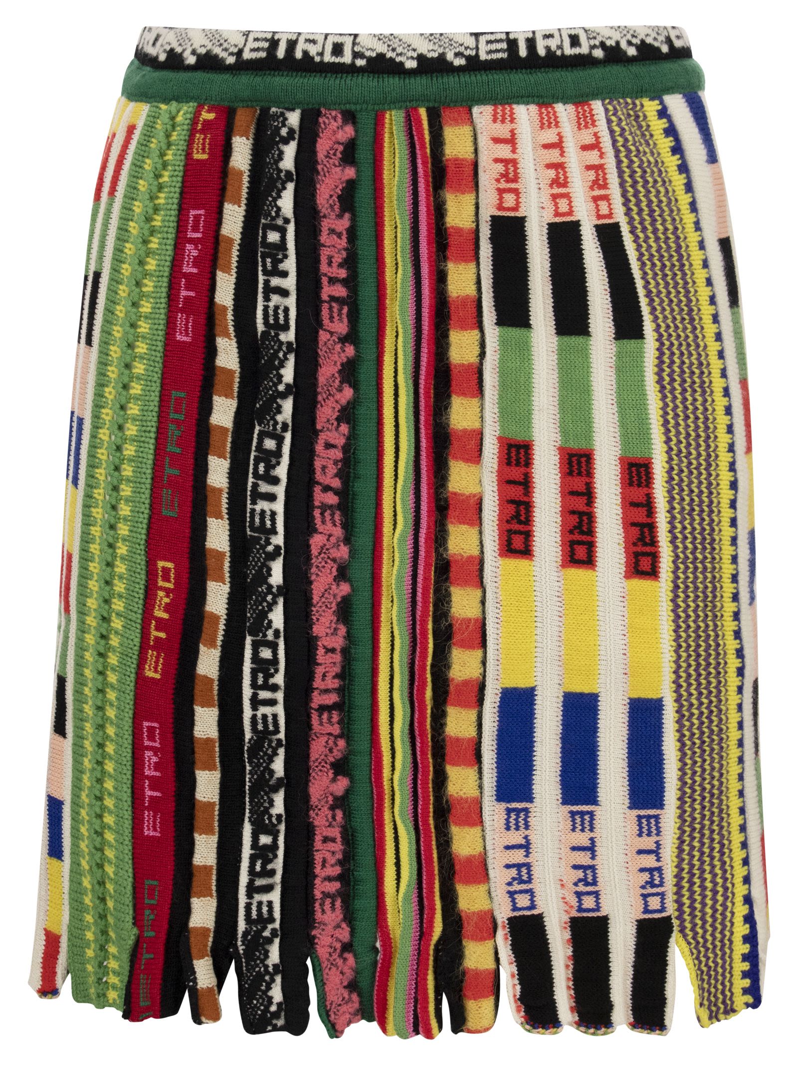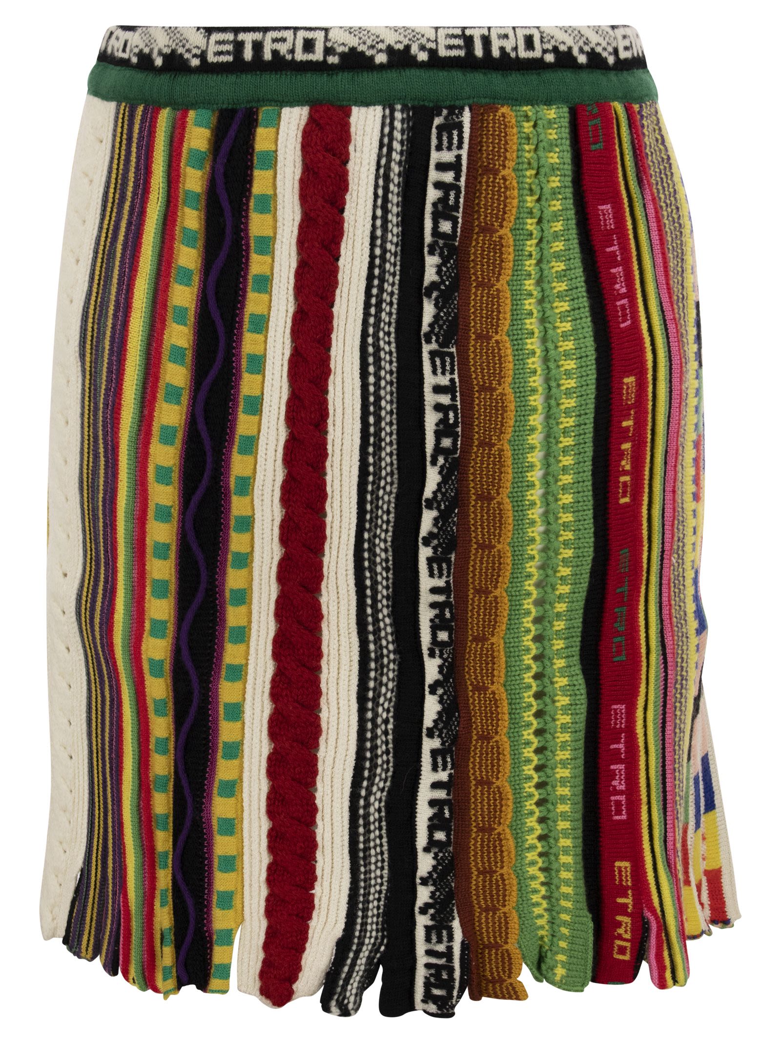 Pleated jacquard knit skirt, made with multicoloured rainbow patchwork ribbons, features ETRO details. - Regular fit - Elasticated waistband - Made in Italy DESIGNER ID: 13761 9169 8000