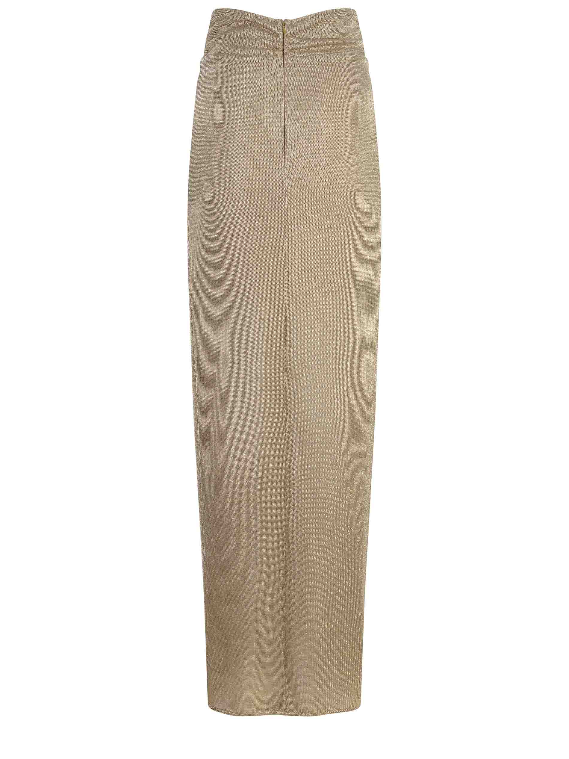 Giuseppe Di Morabito skirt made of golden viscose blend. Internally lined miniskirt. Golden metallic effect. Knot detail on the front. Slit on the front. Invisible zip closure and hook on the back. 65% viscose 30% metal fibers 5% elastane Made in Italy