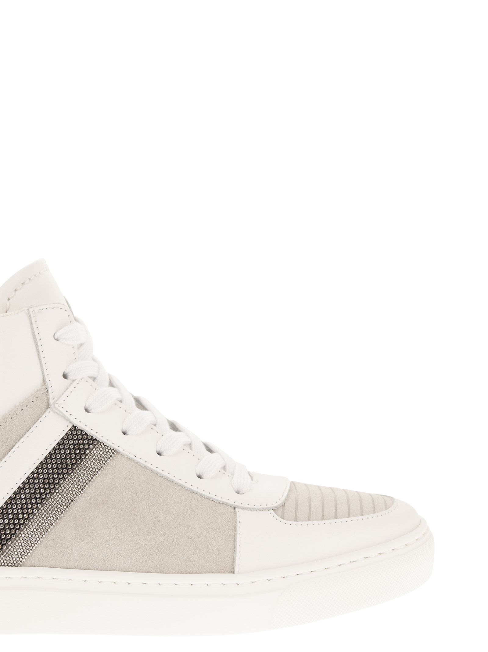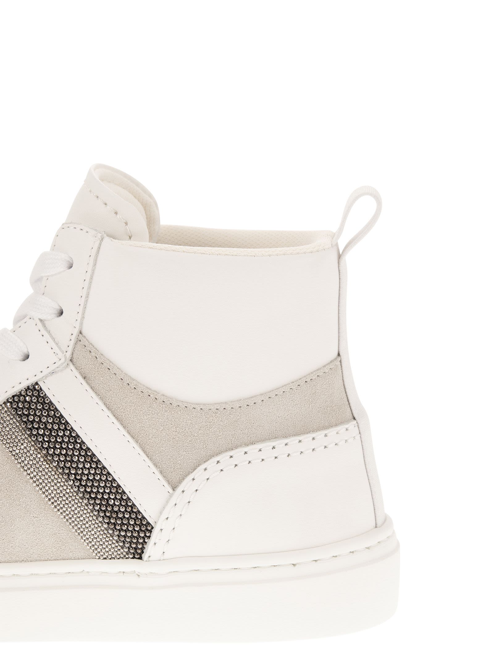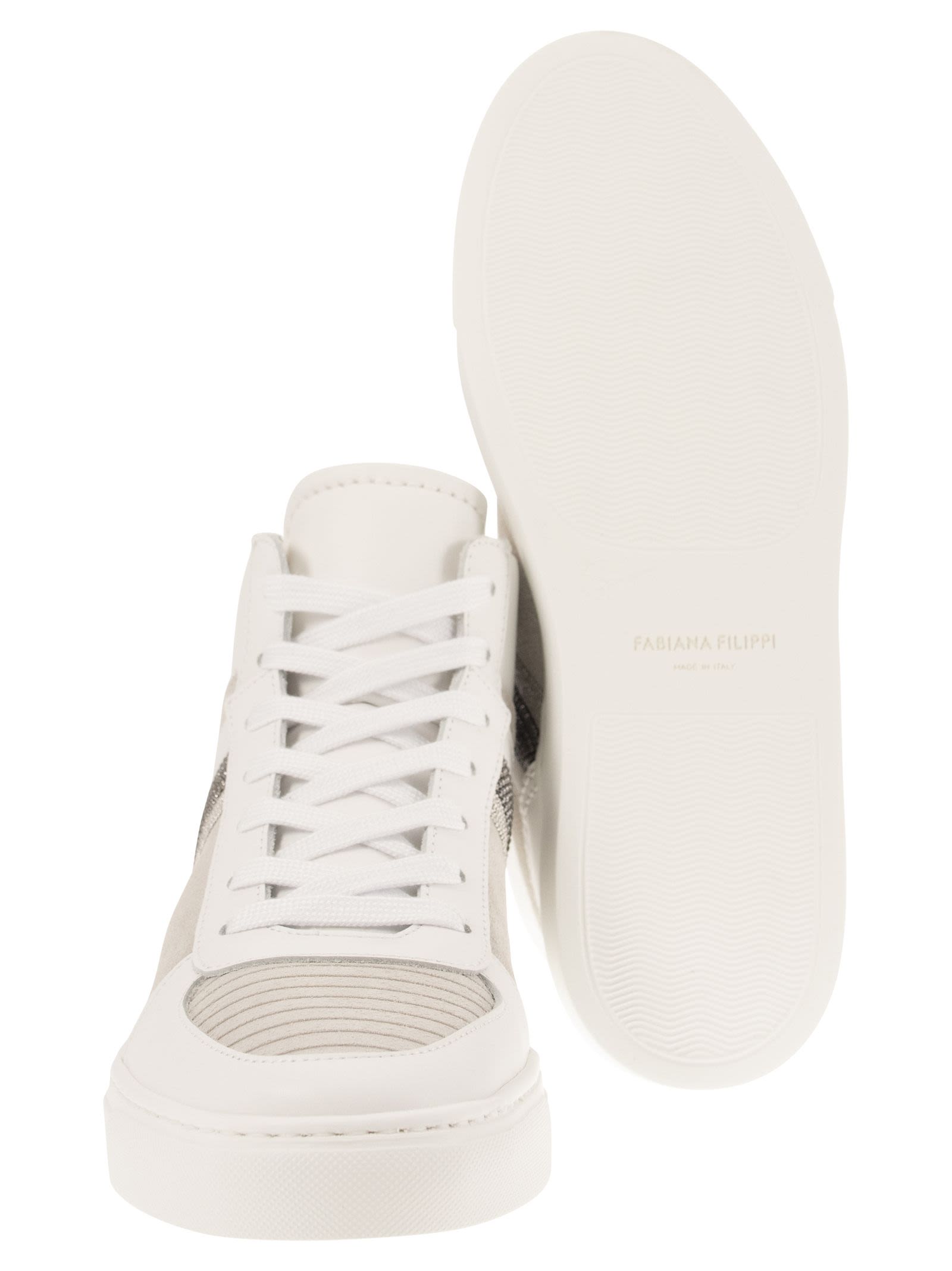 Two-tone high trainers made of leather with bright stitch detail on the side. A model that recalls comfortable sports shoes, embellishing them with feminine elements, in full Fabiana Filippi style. - Genuine leather DESIGNER ID: ASD222A555 H252 VR1