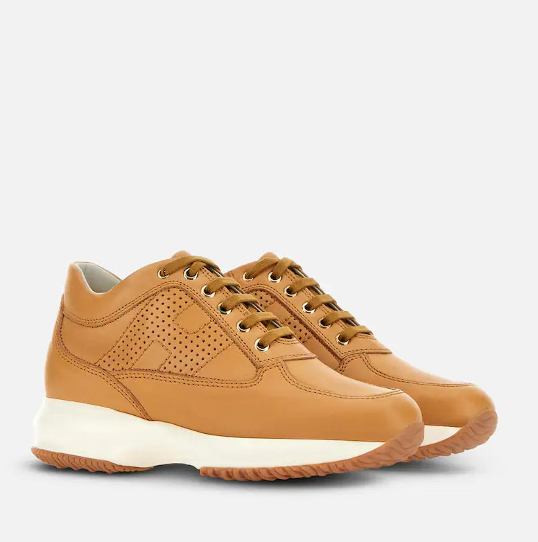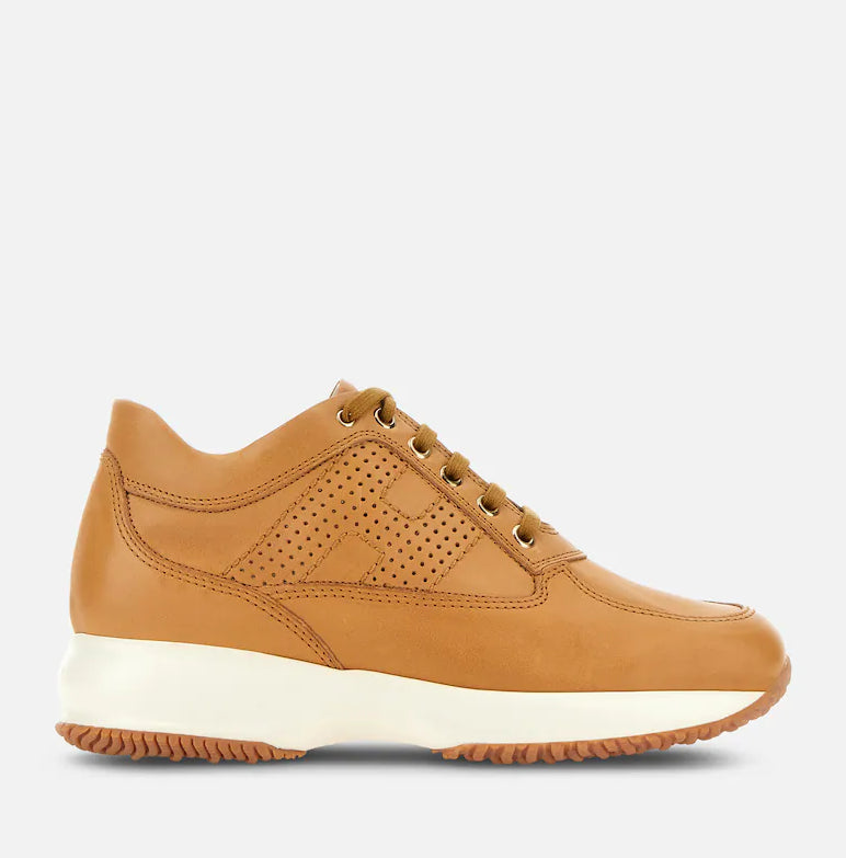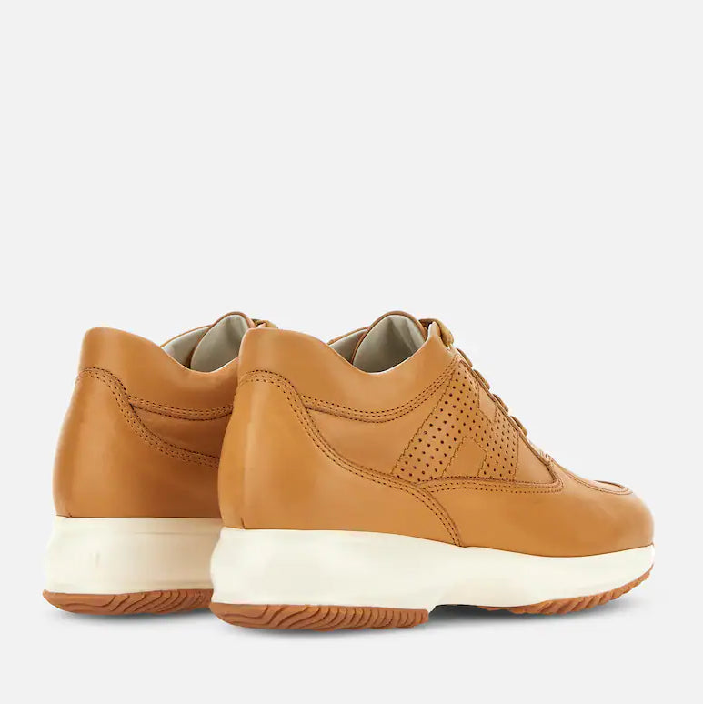 This smooth leather Interactive sneaker features a perforated H on the side.