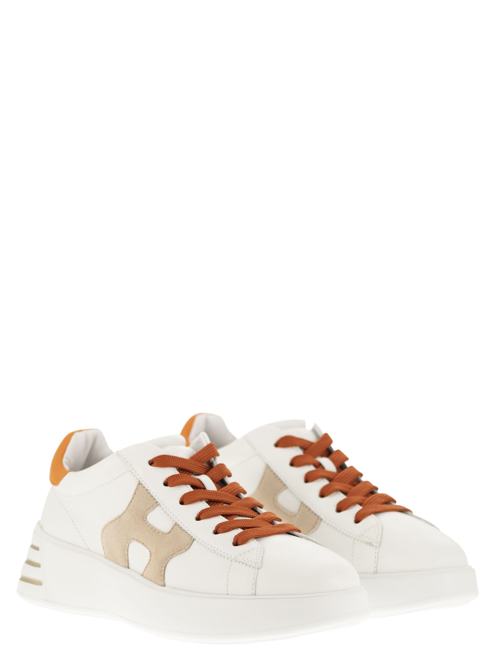 Hogan Rebel trainers are characterised by an extra-light sole with grooves on the back. With soft and refined lines, they are here proposed in nappa leather, with a lateral H in suede. The memory foam footbed ensures cushioning for this iconic and versatile model. - Nappa leather upper - Lateral H in suede leather - Memory foam footbed - Rubber sole with hand-painted stripes - Includes an additional laces DESIGNER ID: HXW5640DN61N4O0YEF