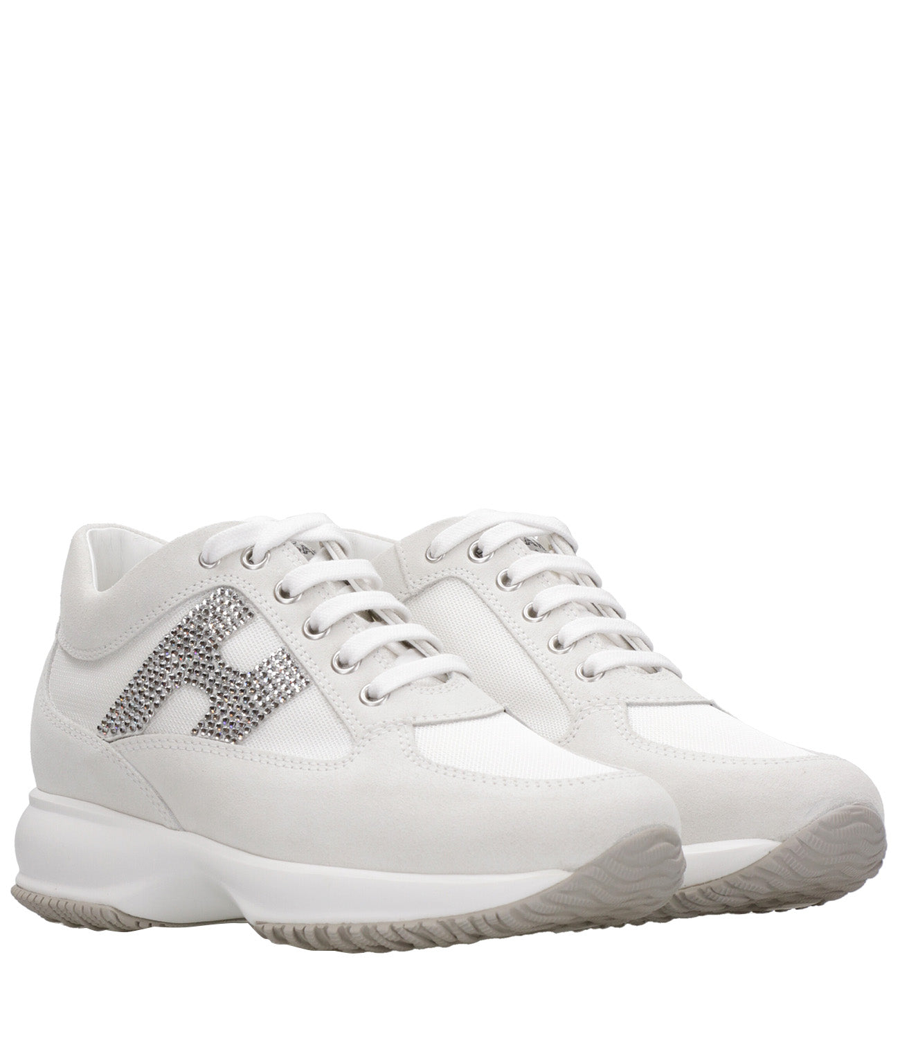 - Suede and technical fabric upper - Braided lace-up closure - Metal eyelets - Lateral rhinestone H - Fussbett logoed and removable 1.2 cm - Rubber sole - Logo lettering on the sole at the edge on the back - Total height 5.7 cm - Fabric pouch included - Made in Italy