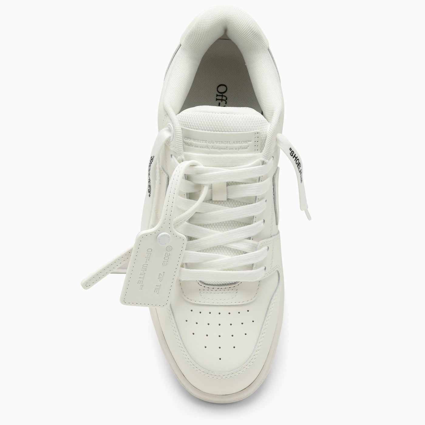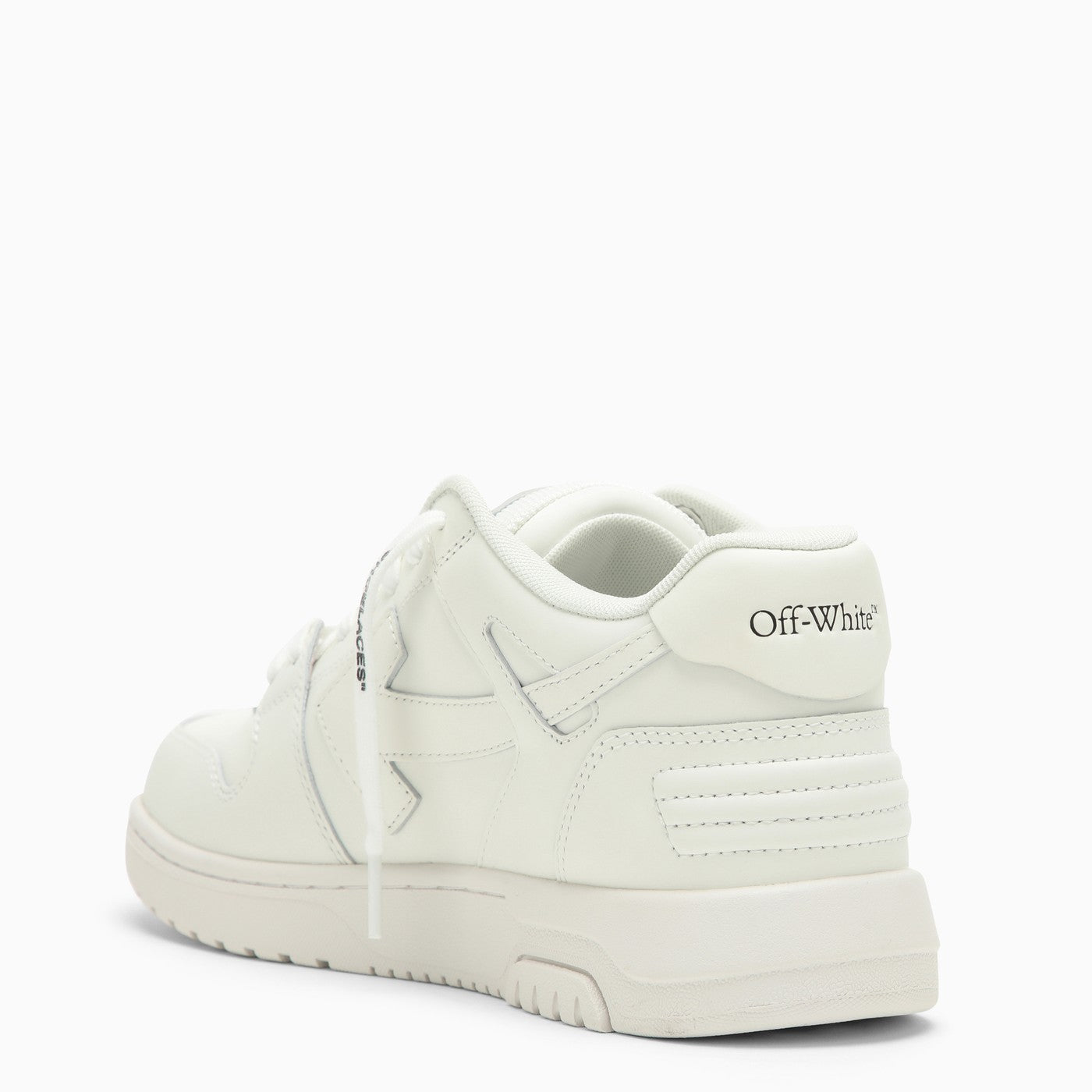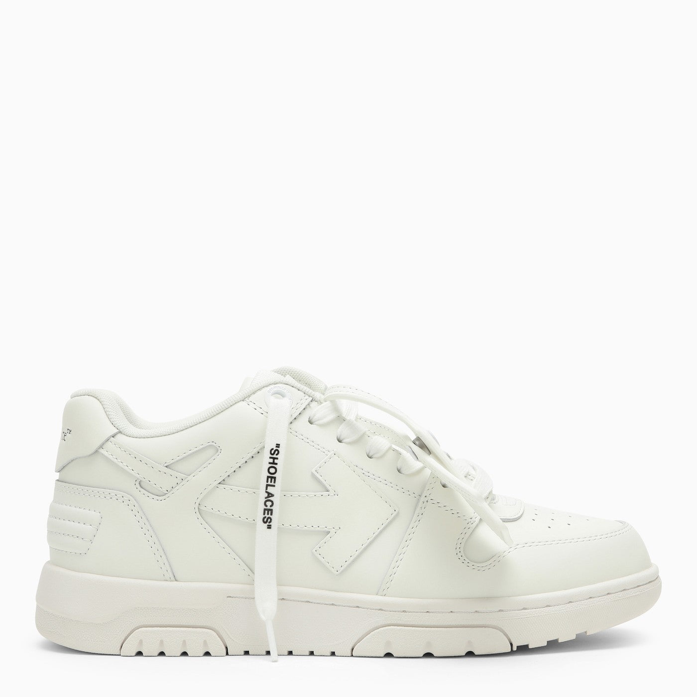 Low top sneaker from Off-White featuring white leather upper, Arrows pattern, counter logo heel, leather detailing, textured laces, distinctive Zip Tie logo plaque, round toe and flat rubber sole.