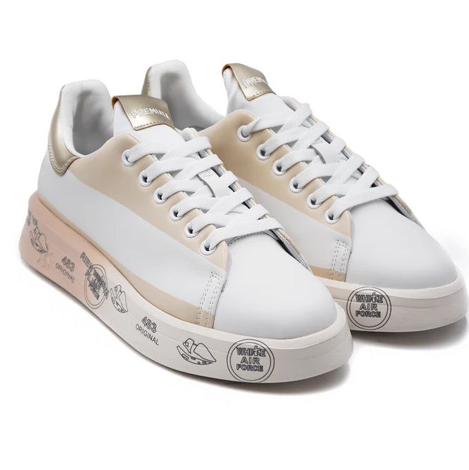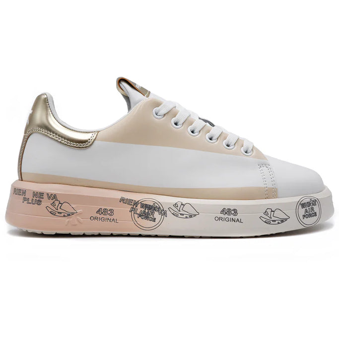 Premiata Belle leather sneakers. Premiata logo embossed on the tongue and heel.