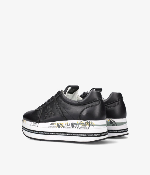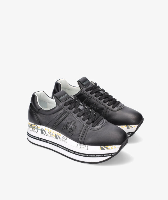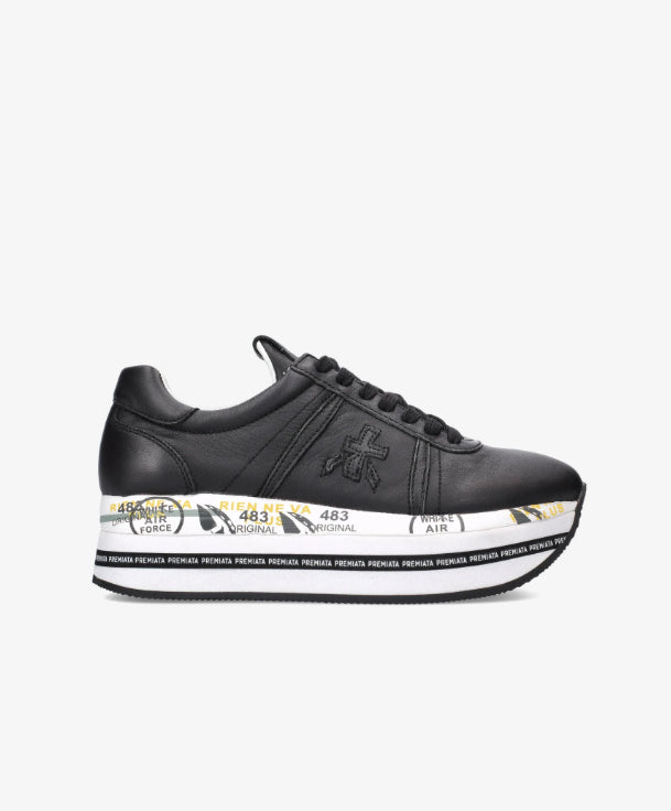 SneakersBeth with upper entirely in leather. Platform sole personalized with Premiata logo screen printing.