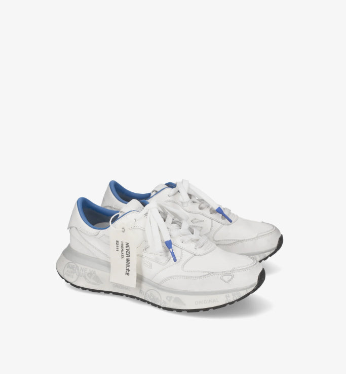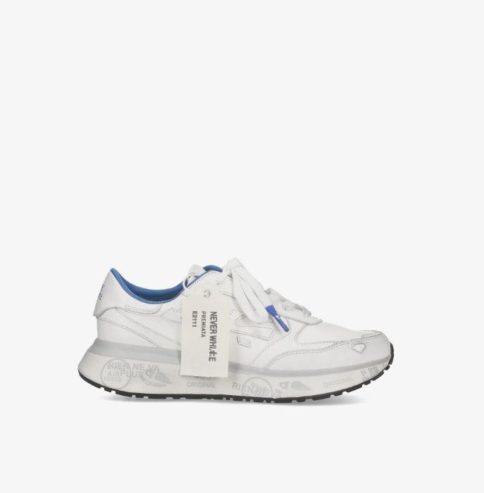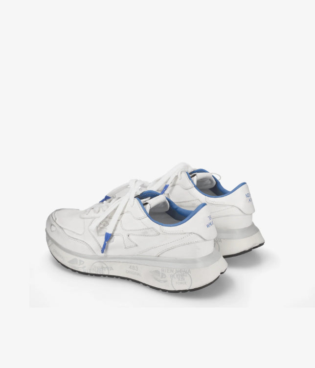 The sole, enhanced by Premiata's iconic style details, enhances the urban and casual-chic identity.