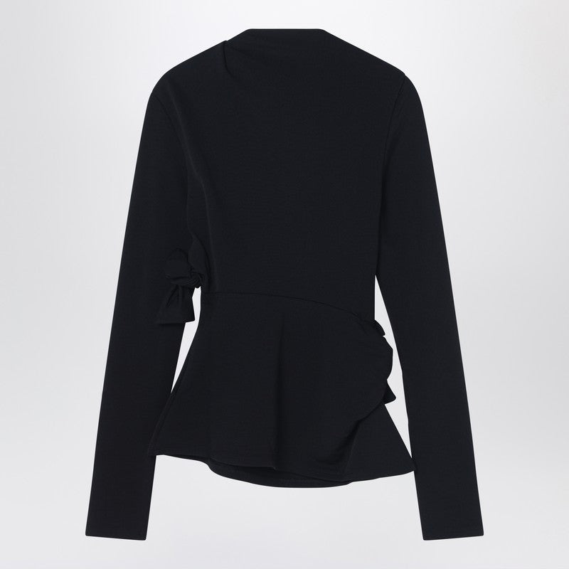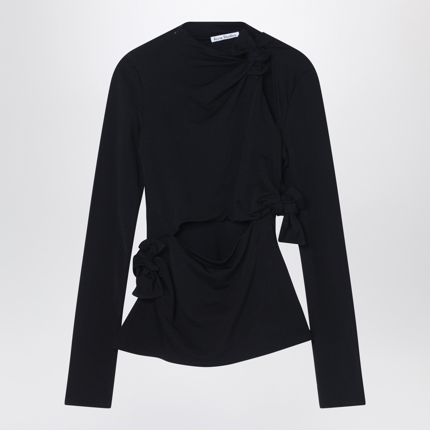 Black viscose-cotton blend stretch top from Acne Studios featuring long sleeves, knots and cut-out details and a regular fit.