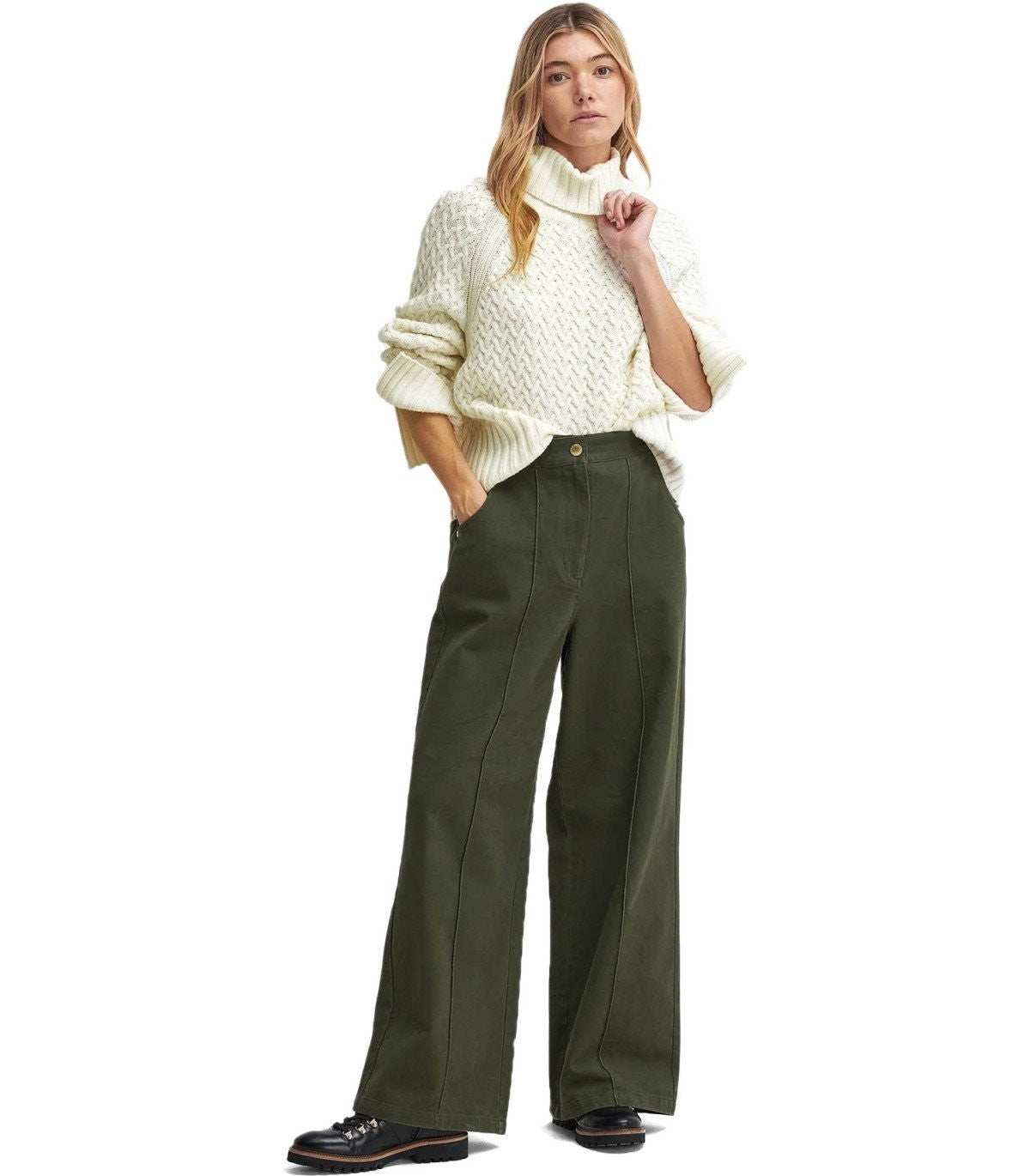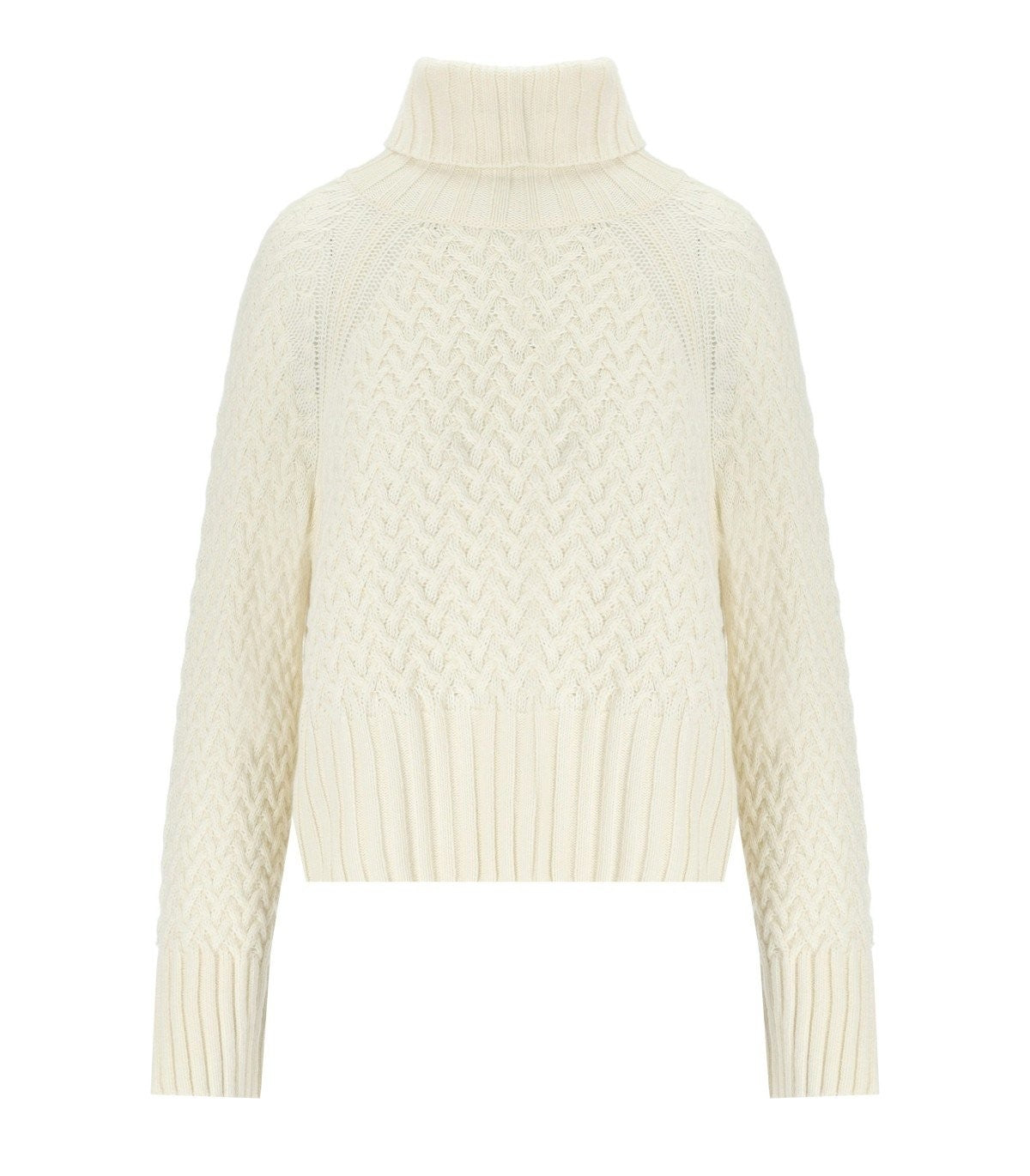 Malton jumper by Barbour made of a wool-viscose blend in ecru white. Characterized by long raglan sleeves with a thick hem, it features a woven texture. Equipped with a high collar with a fold. Collar, hem, and cuffs finished with ribbed texture. Regular fit. Composition: 40% wool, 25% viscose, 25% polyamide, 10% cashmere.