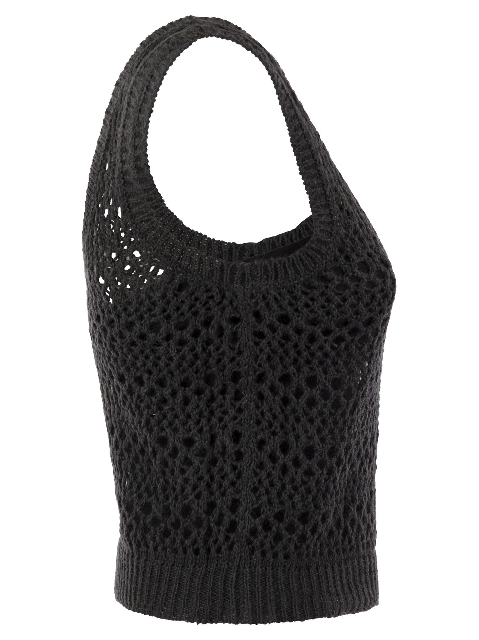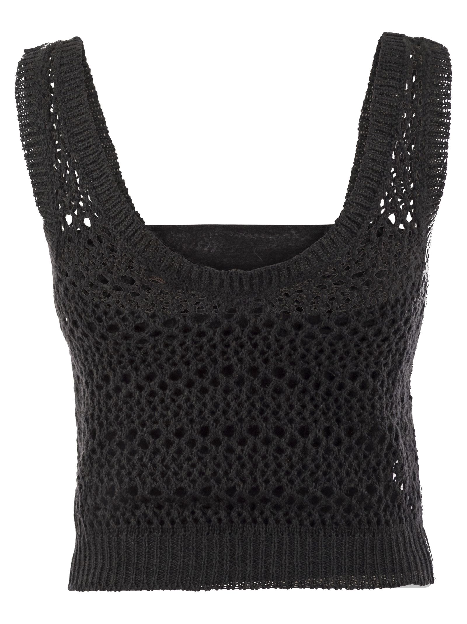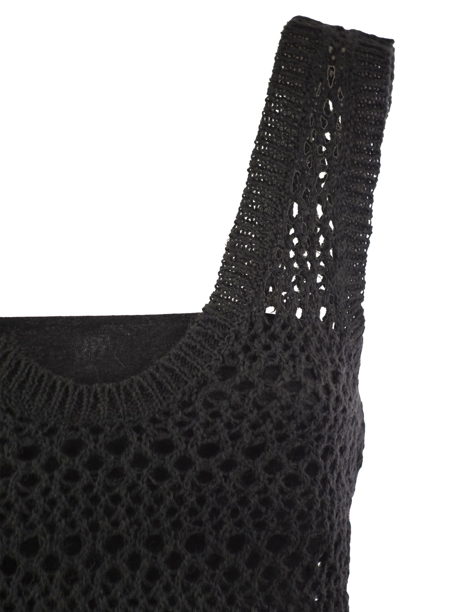The combination of fine materials and contemporary lines enhances the summer allure of the Net knit top with refined material effects. Lightweight linen and silk yarns are worked together to create a sophisticated net effect, which makes the texture light and gives the garment a very precious look. The cotton under-top, enriched with a small percentage of elastane, completes the style and comfort of the garment. - Wide neckline - Removable inner top - Mesh workmanship DESIGNER ID: MRA581130 C2615