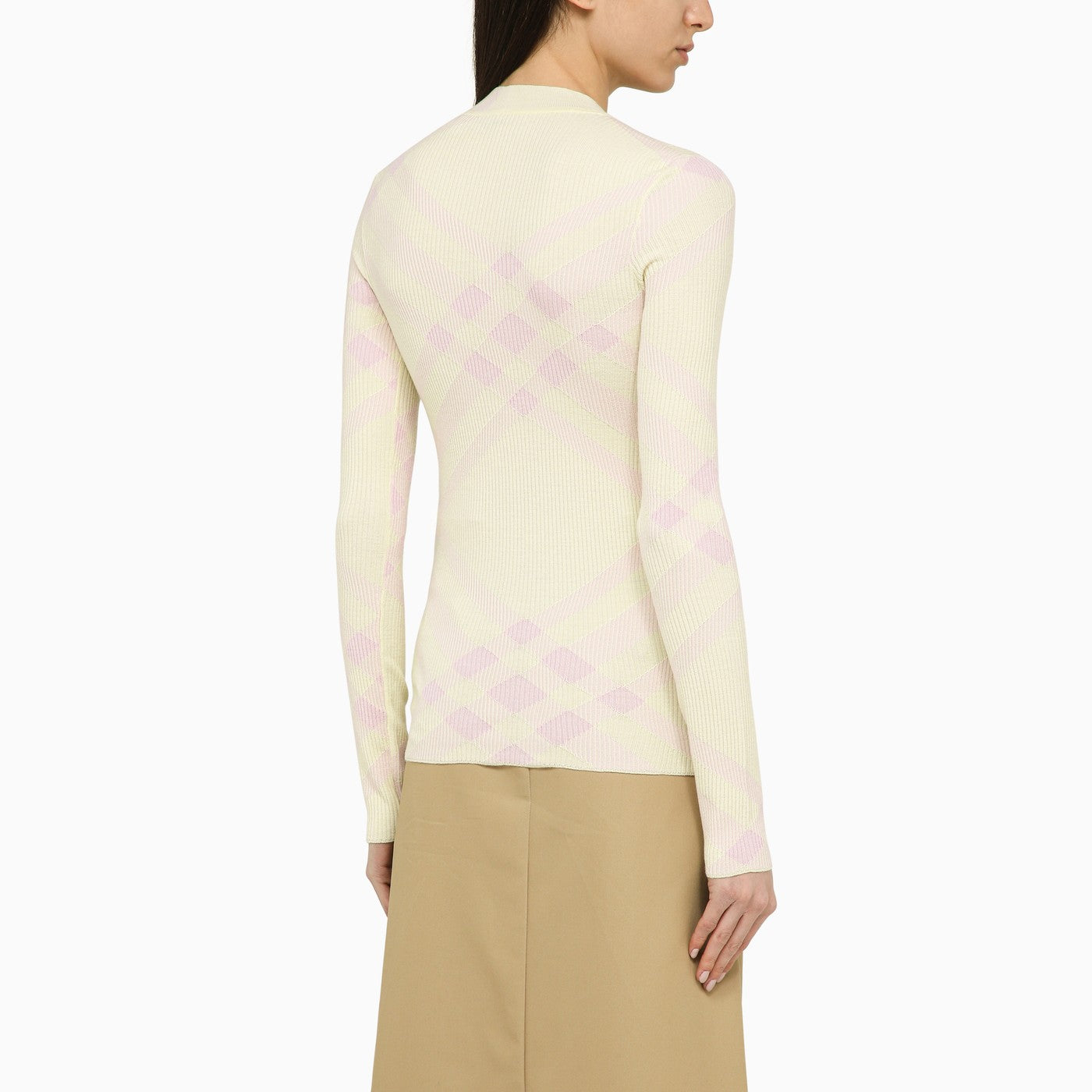 Pink check pattern wool crew neck sweater by Burberry features long sleeves, a ribbed design and a slim fit.