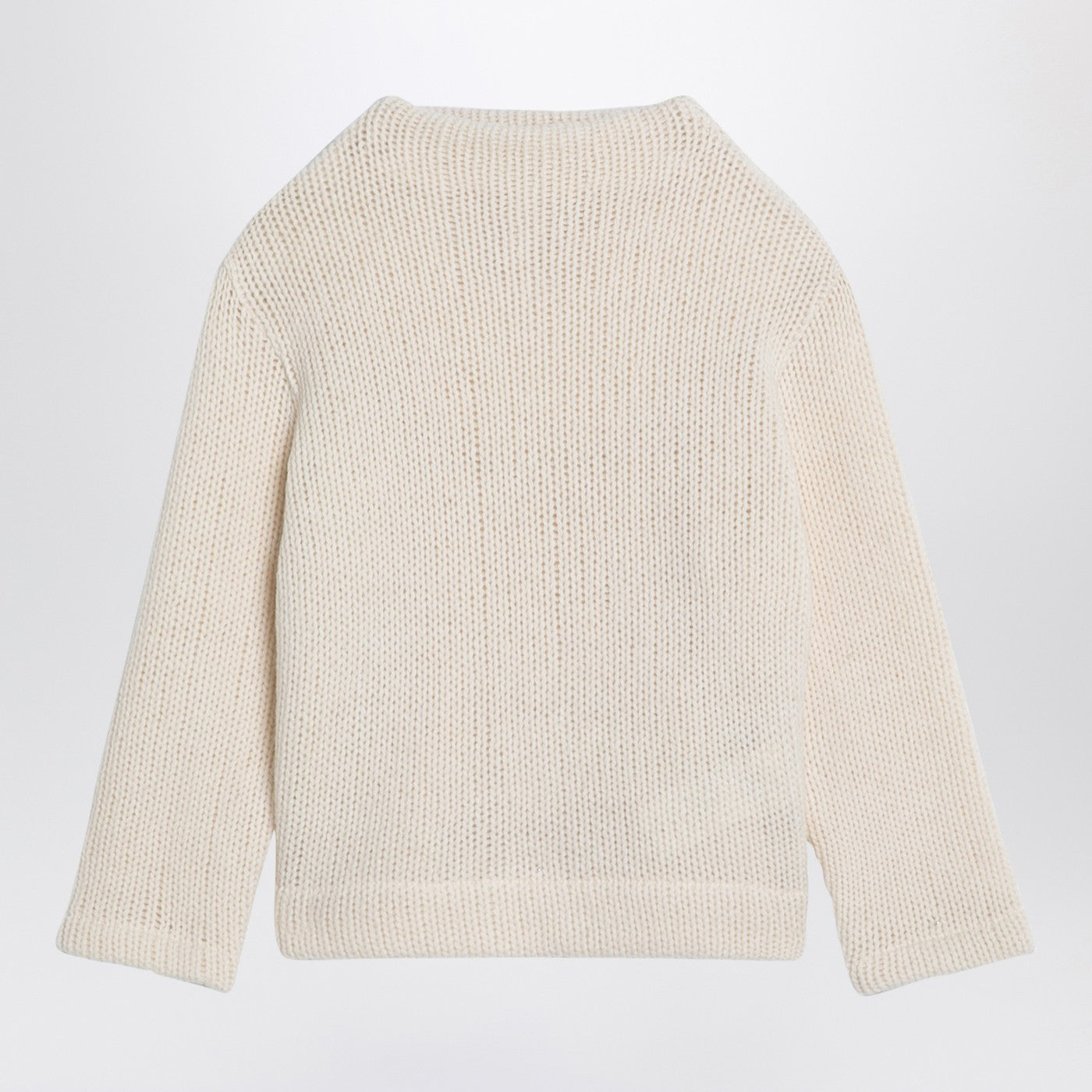 Ivory wool blend jumper from Douuod featuring long sleeves, back logo patch and straight hem.