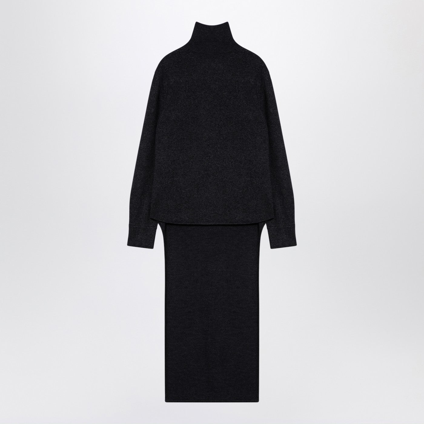 Dark grey wool and cashmere blend jumper by Givenchy, features a ribbed turtleneck, long sleeves with button fastening and a drawstring back.