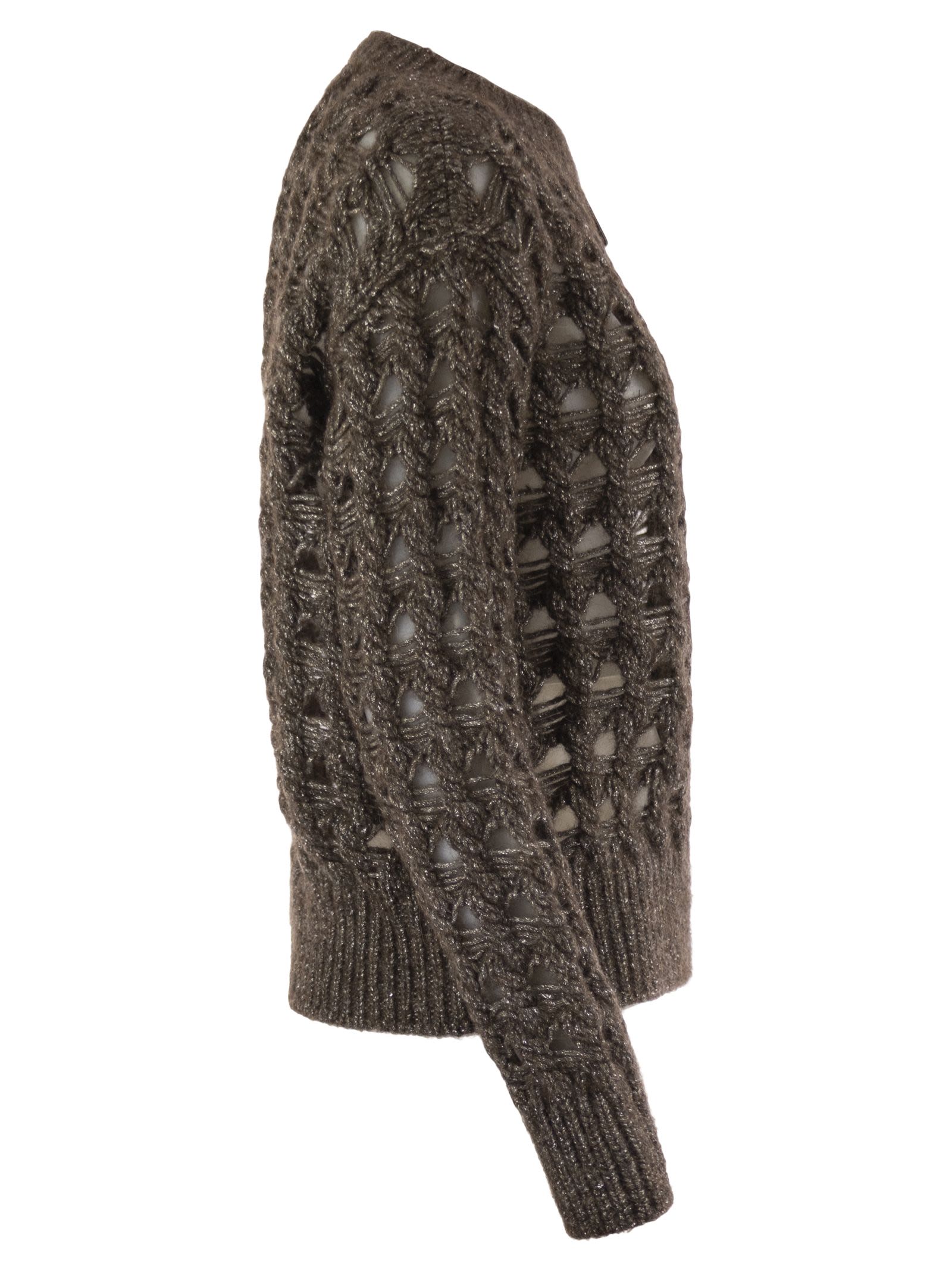 Jumper made of an alpaca and wool yarn with openwork stitch. A cosy and versatile garment that becomes special thanks to the fine yarns and weave. - Regular fit - Openwork knit - Fineness 3 - Crew neck - Long sleeves - Ribbed finished edges - Metal Herno logo on the back DESIGNER ID: MG00032DR70198 8810