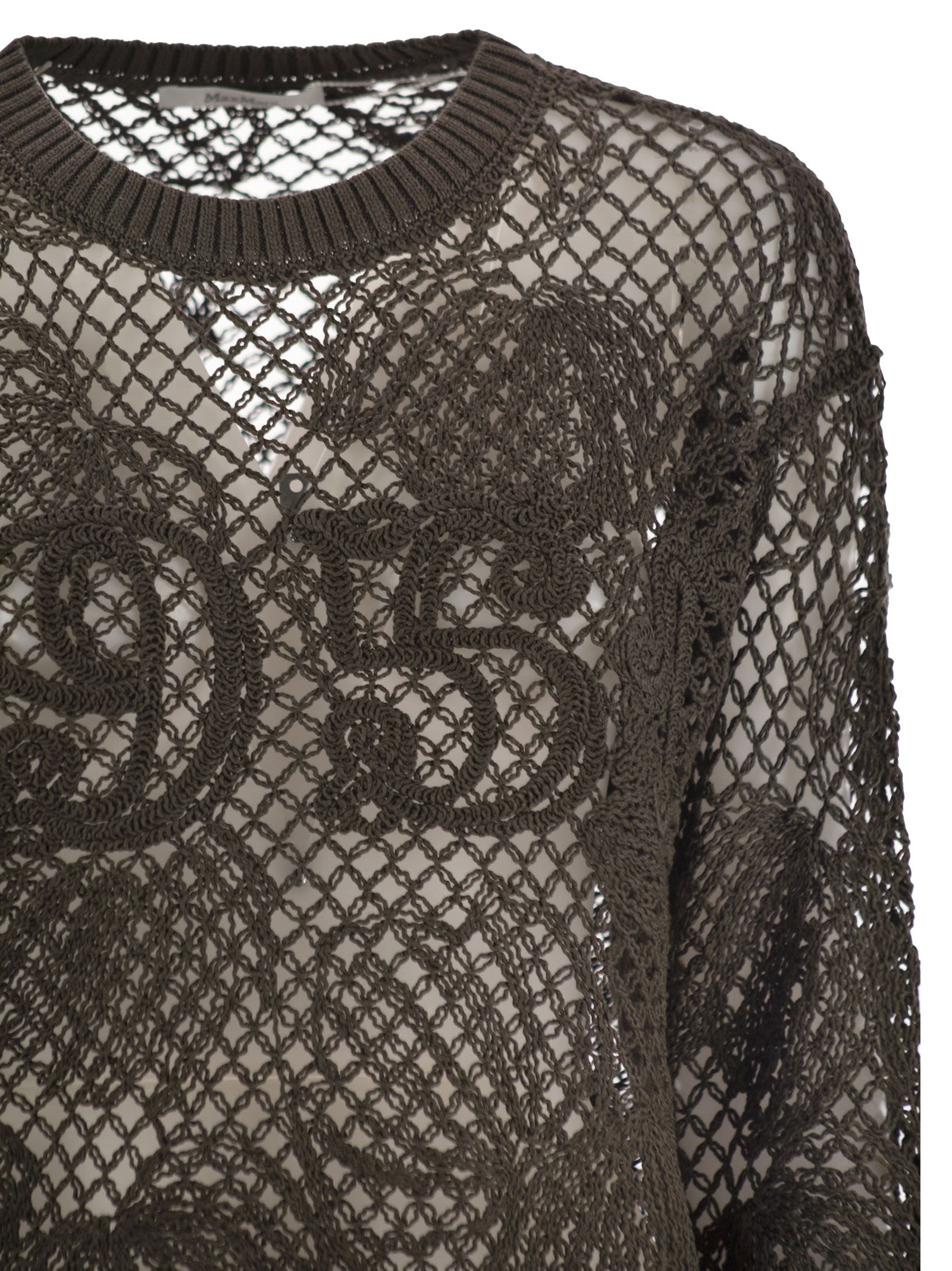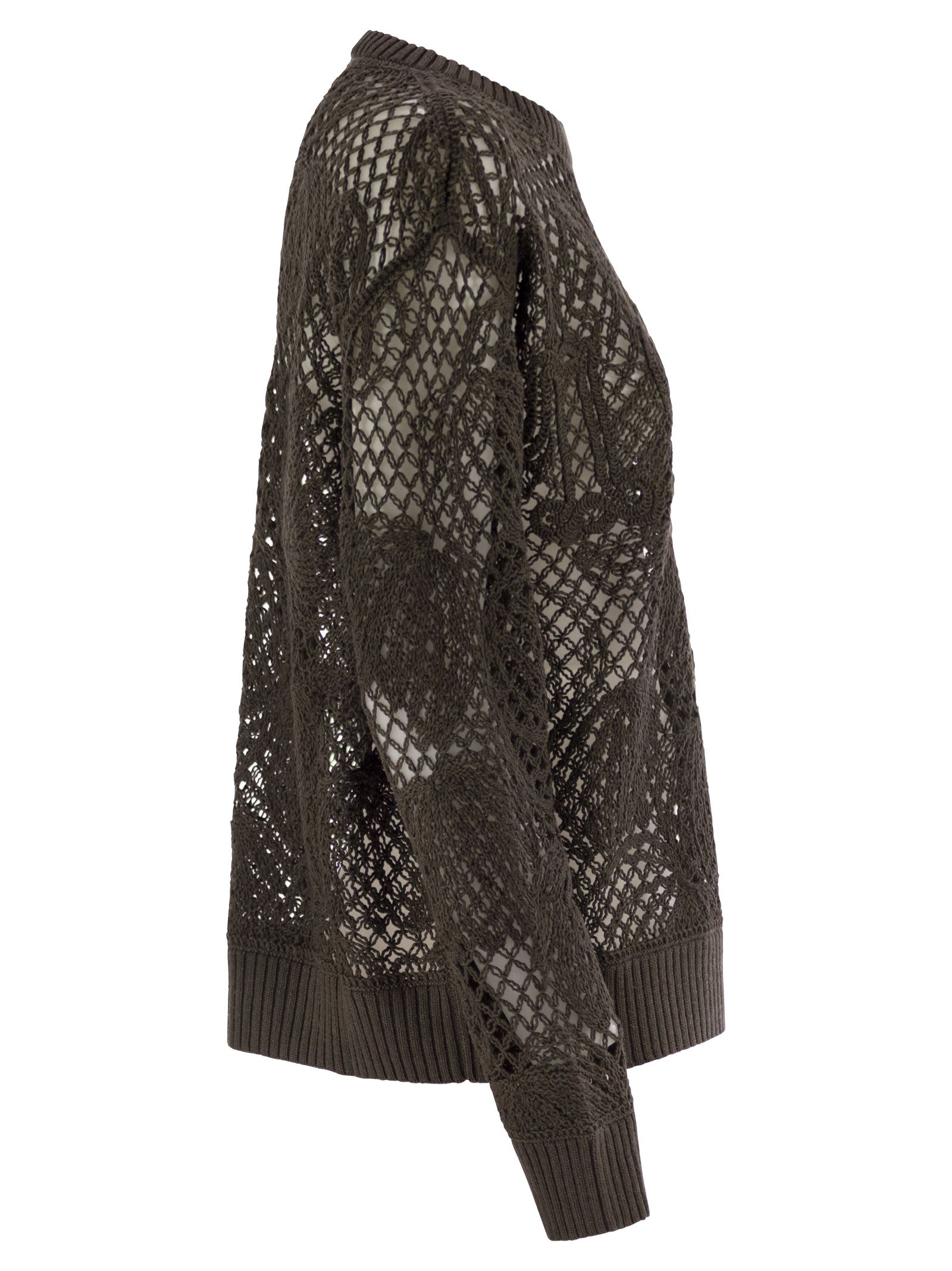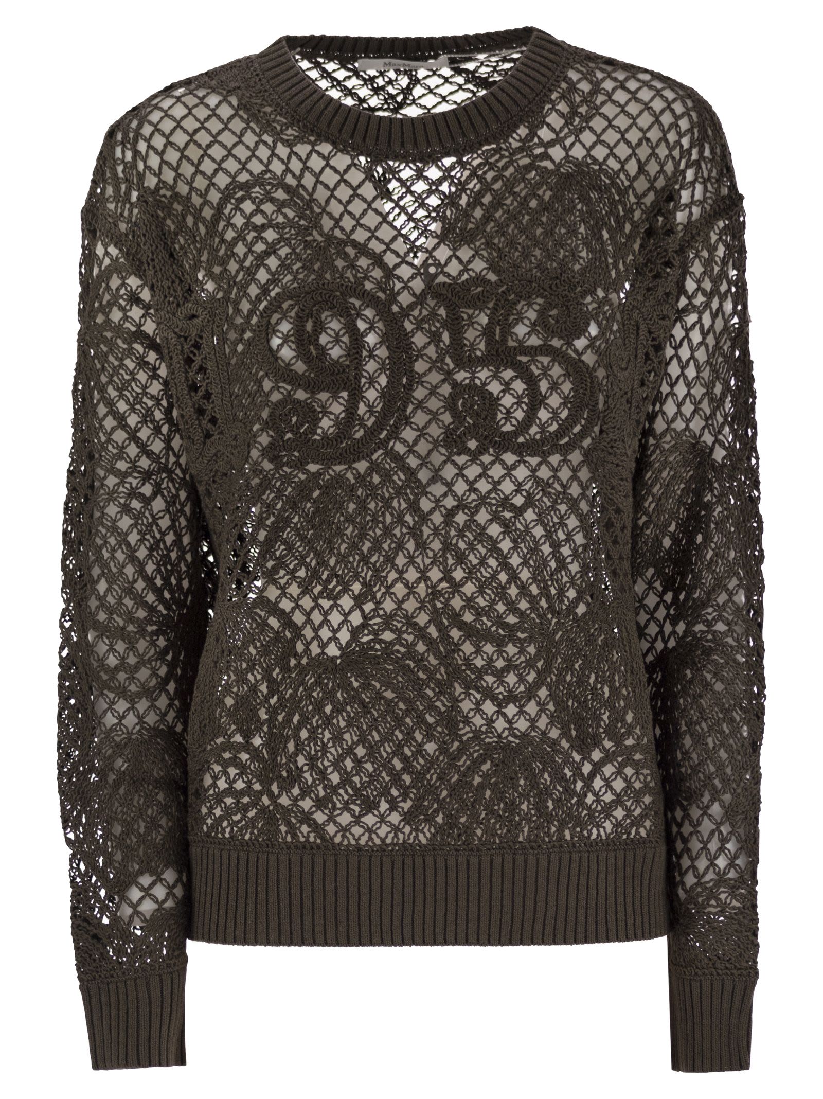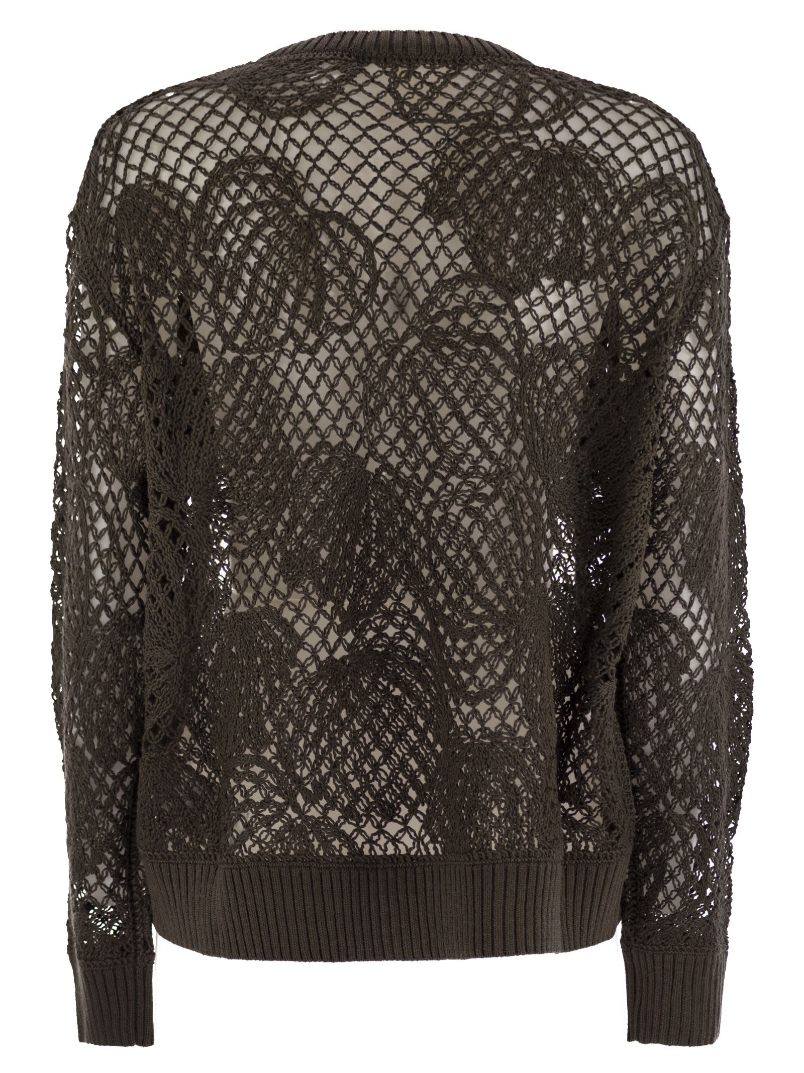 Crew-neck sweater in cotton yarn, featuring a mesh stitch pattern with cornely foliage embroidery and the iconic 1951 logo on the front. Finished with dropped-shoulder long sleeves and ribbed edges. - Crew neck - Mesh stitch workmanship - Dropped shoulder DESIGNER ID: 2511361102600 001