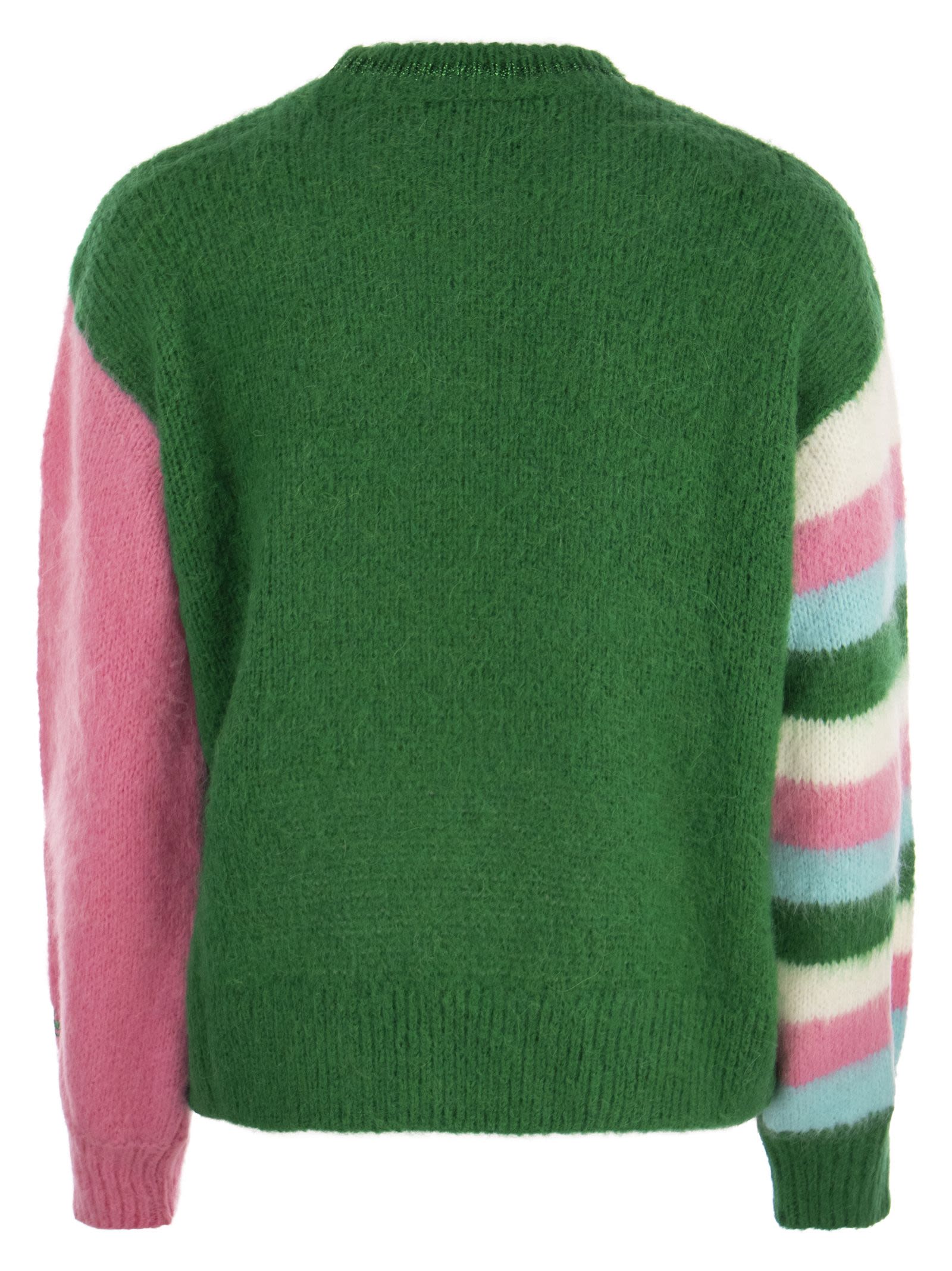 Crew-neck jumper with slightly puffed sleeves and front lettering. Embellished with contrasting colour block sleeves. - Comme ça' inscription on the front - Saint Barth logo on the sleeve - Contrasting sleeves DESIGNER ID: DANY002 00428E