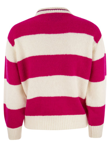 Crew-neck jumper with slightly puffed sleeves and front lettering. Embellished with a maxi-striped pattern. - Lettering "Fuori dalle righe" on the front - Striped pattern - Crew-neck DESIGNER ID: DANY002 00775E