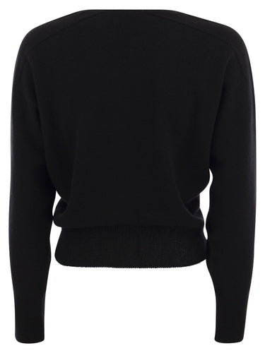 Extremely soft jumper thanks to the fine cashmere from which it is made. Finished with a V-neck, it is perfect for colder days. Ribbed edges and hem. - Regular fit - V-neck - Long sleeves DESIGNER ID: V24612 NERO