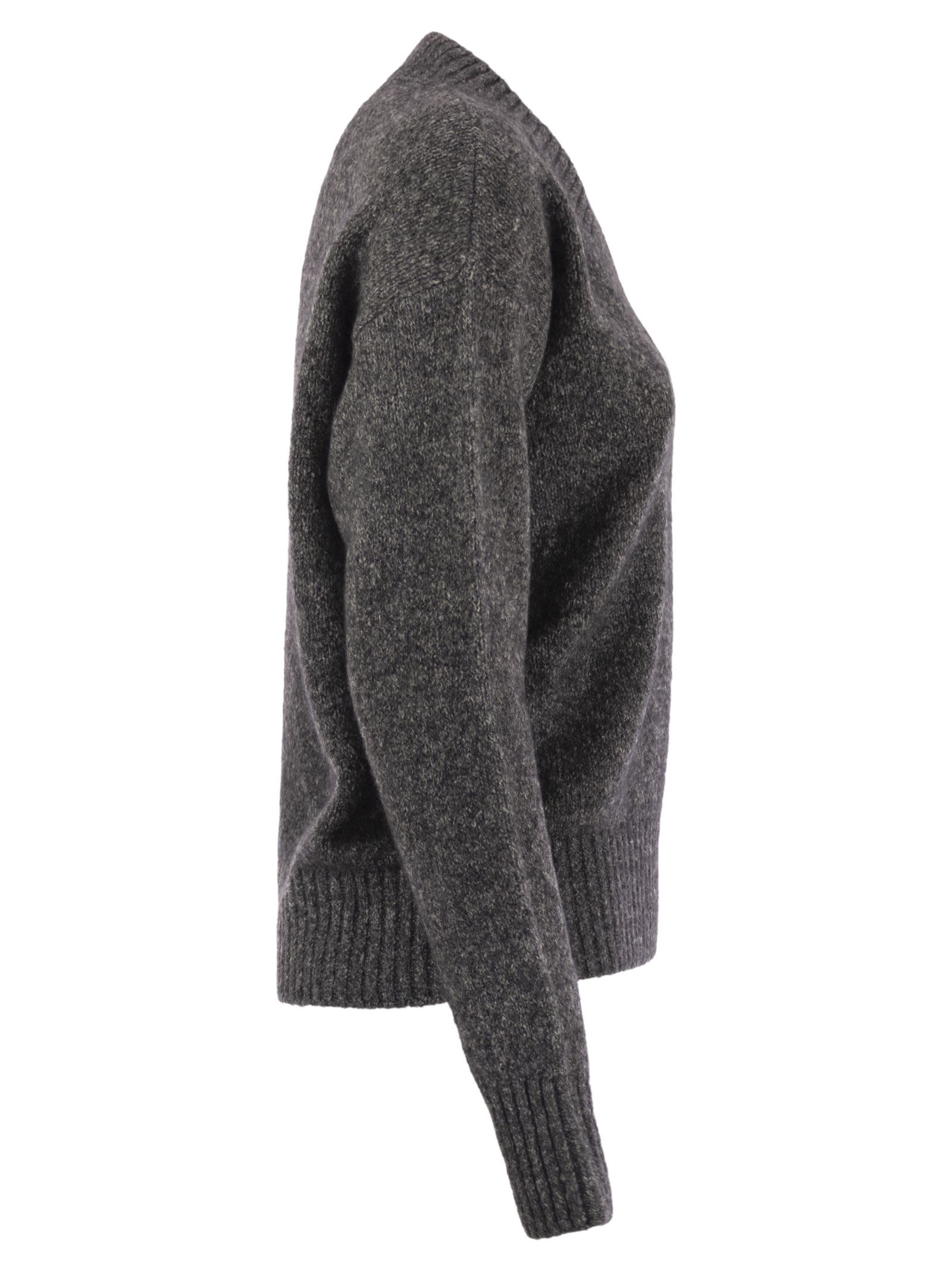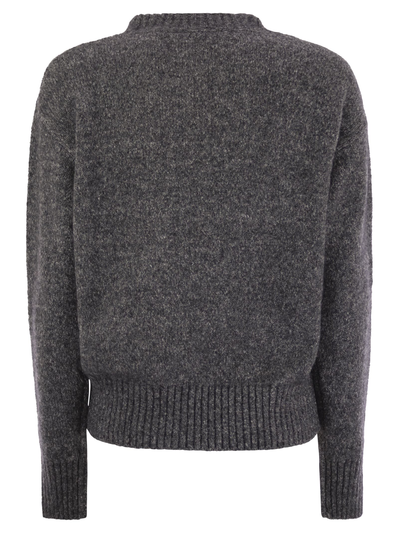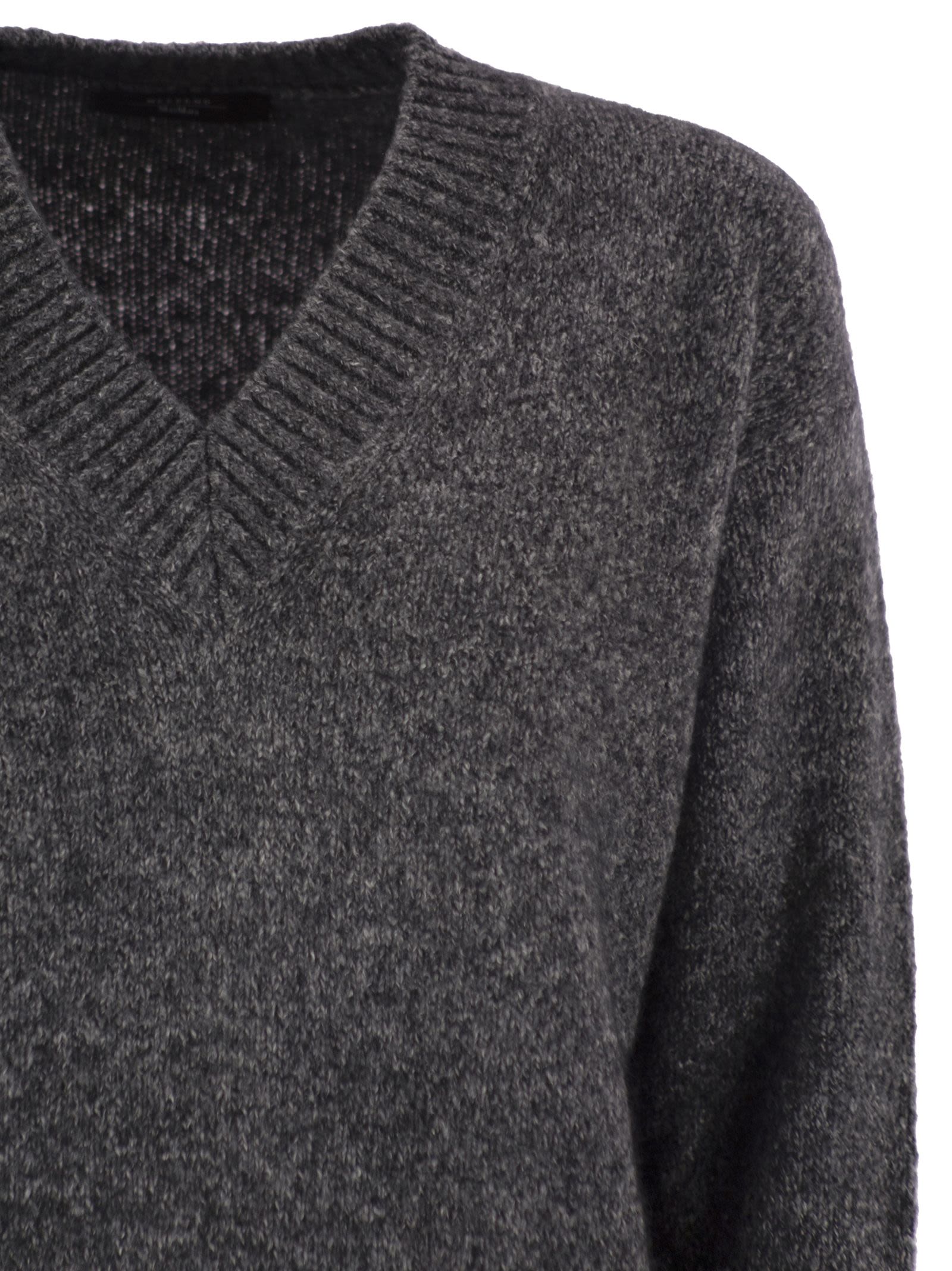 Alpaca and cotton shaved yarn sweater with a loose fit and medium length. - V-neck - Long, low-cut sleeves - Ribbed finished edges DESIGNER ID: 2525366122600 004